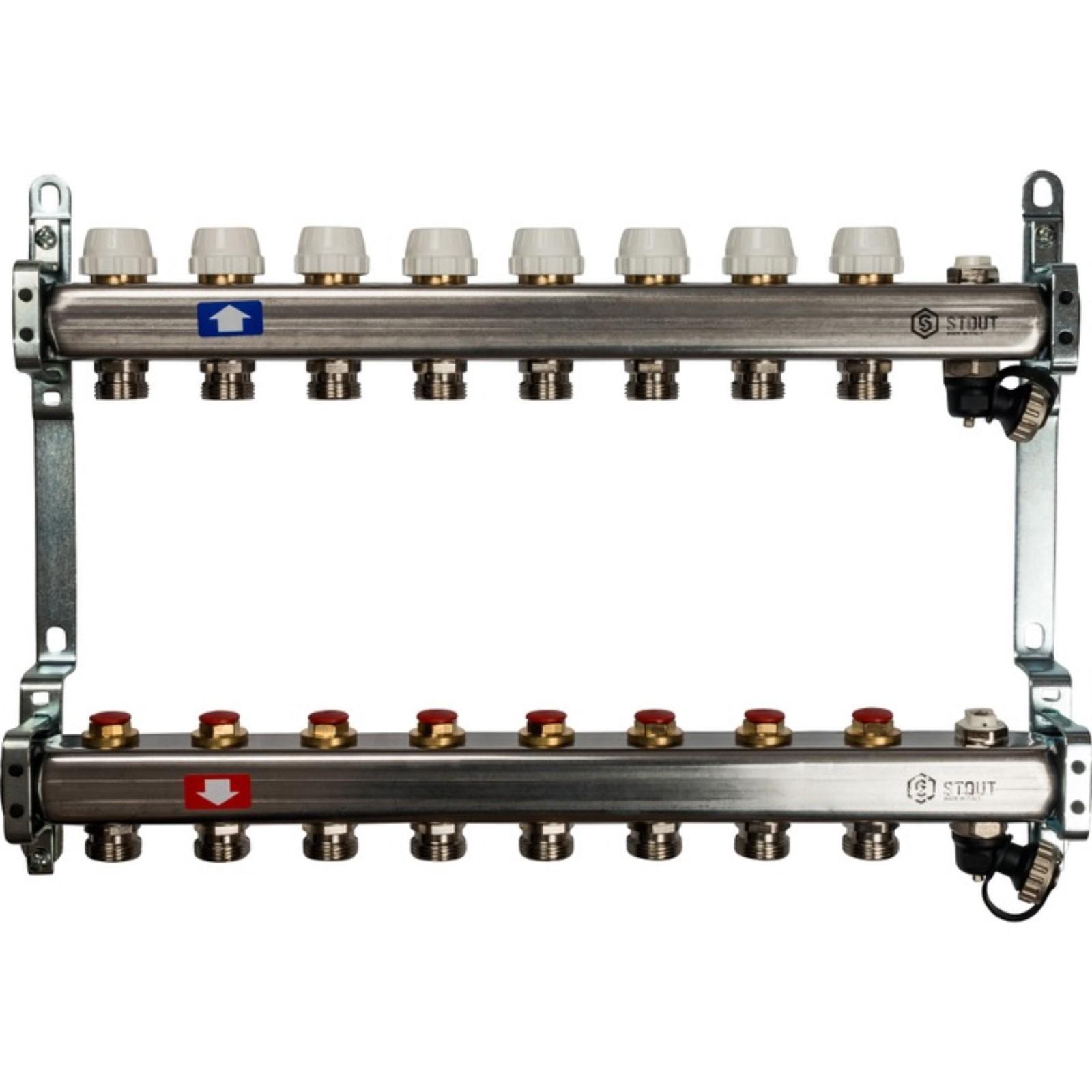 Коллекторная группа STOUT SMS-0932-000008, без расходомеров, клапан, 8 выходов, нерж. сталь