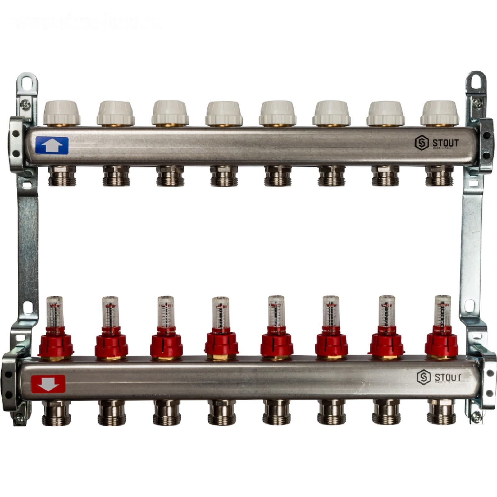 Коллекторная группа STOUT SMS 0917 000008, 1"х3/4", 8 выходов, с расходомерами, нерж. сталь