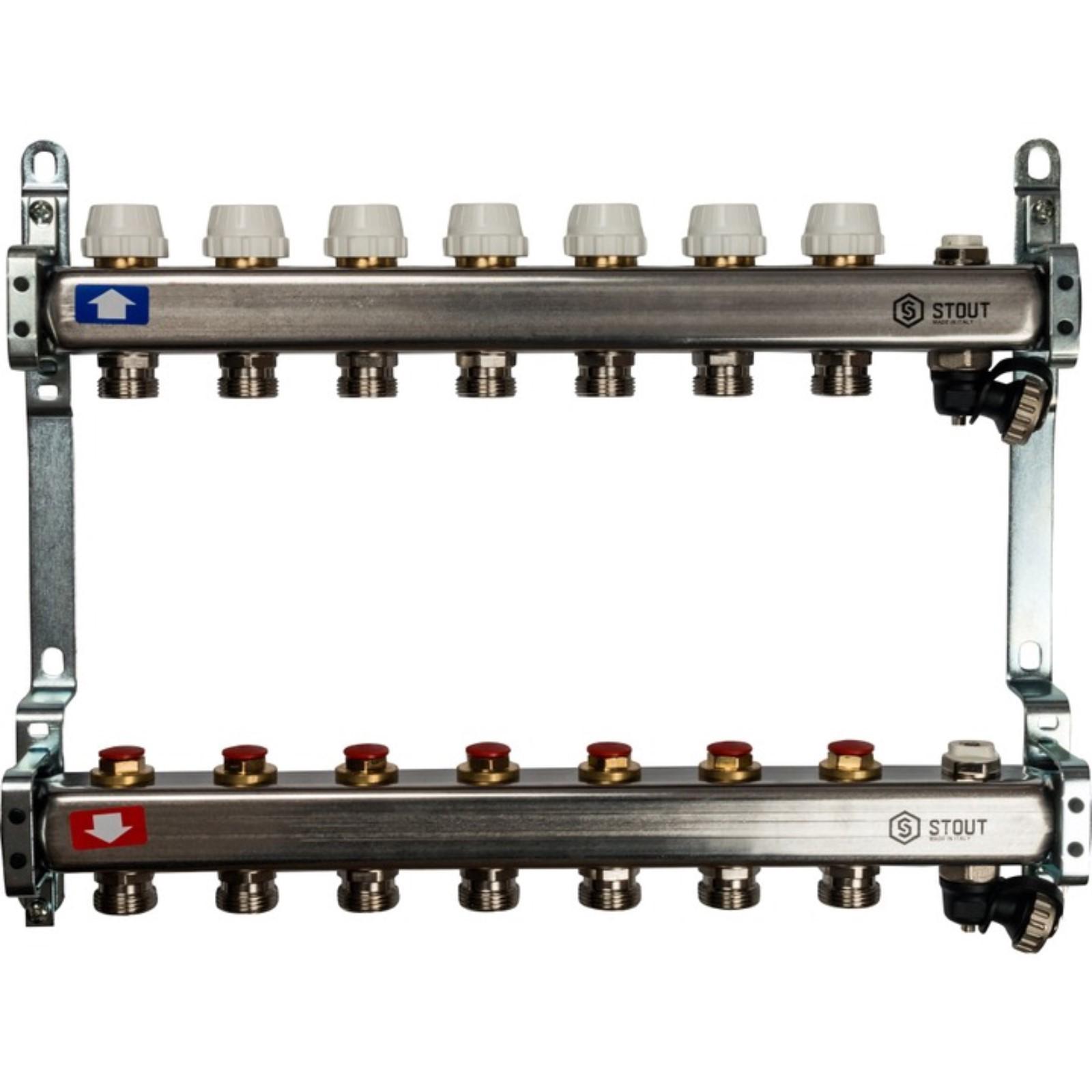 Коллекторная группа STOUT SMS-0932-000008, без расходомеров, клапан, 7 выхода, нерж. сталь