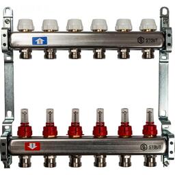 Коллекторная группа STOUT SMS 0917 000006, 1"х3/4", 6 выходов, с расходомерами, нерж. сталь