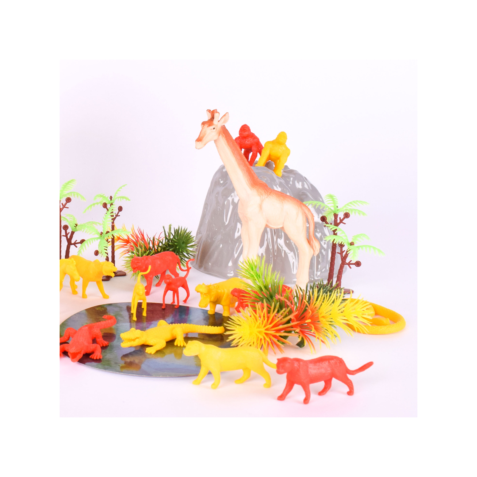 38 предметів! Різноманітні дикі тварини: жирафа, слон, лев, бегемот, крокодил та багато інших! А ще різноманітні дерева та кущі для створення навколишньої природи.