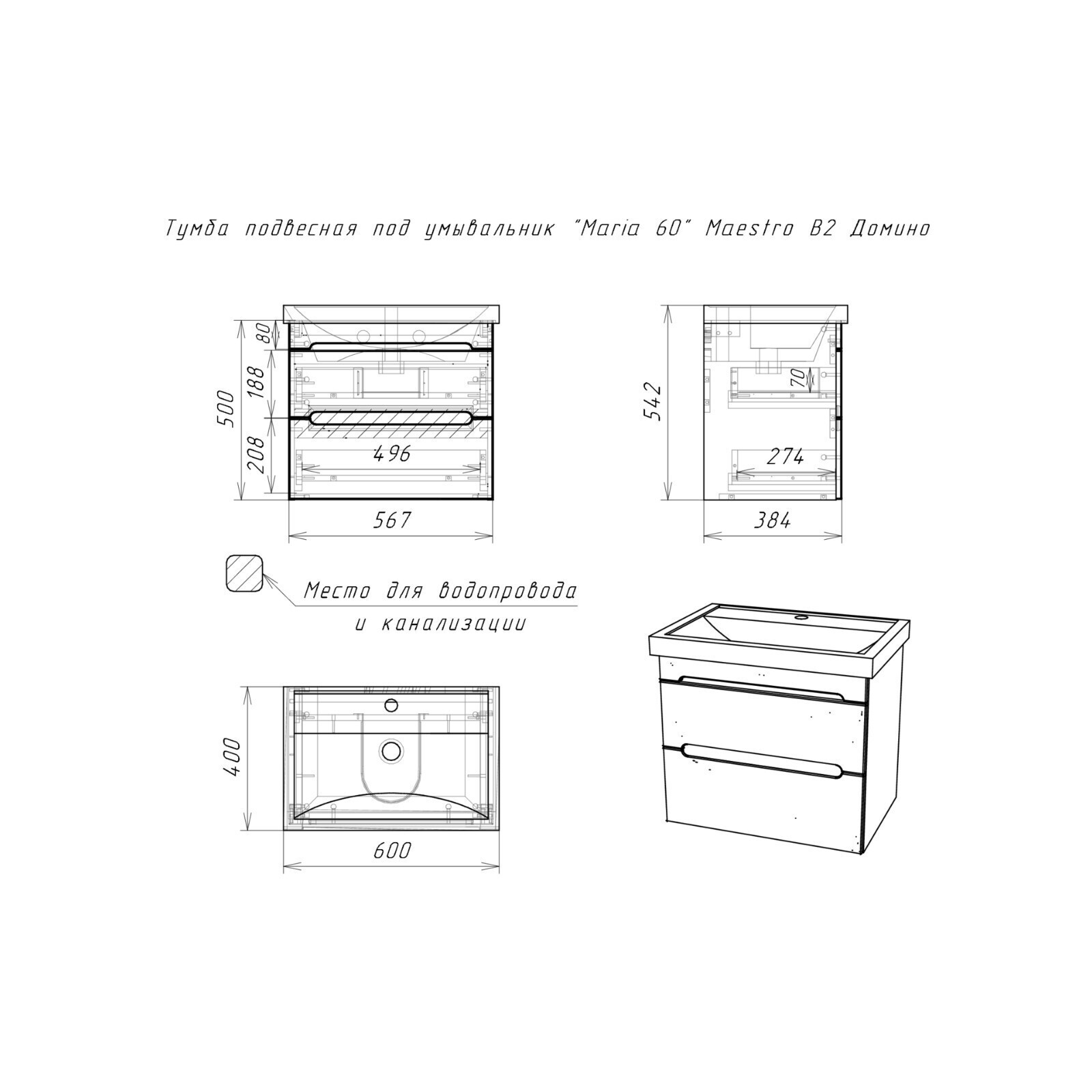 Тумба "Maestro В2" подвесная под Раковина "Maria 60"