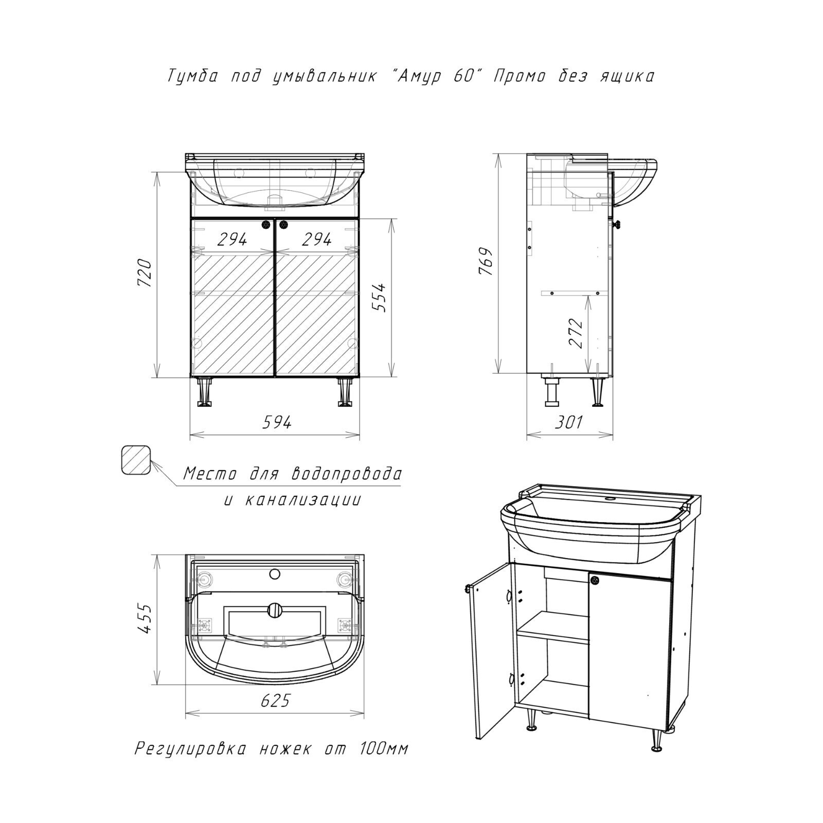 • Подходит для раковины Амур 60