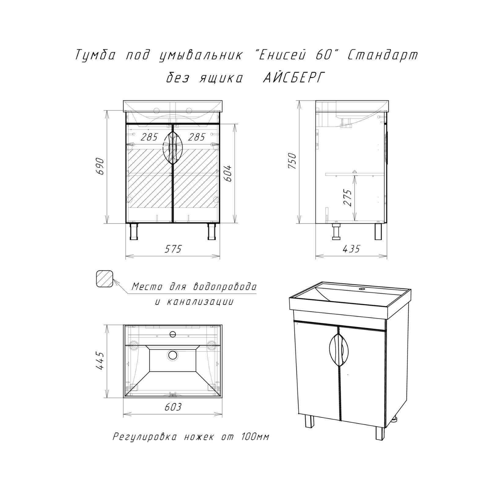 • Подходит для раковины Енисей 60