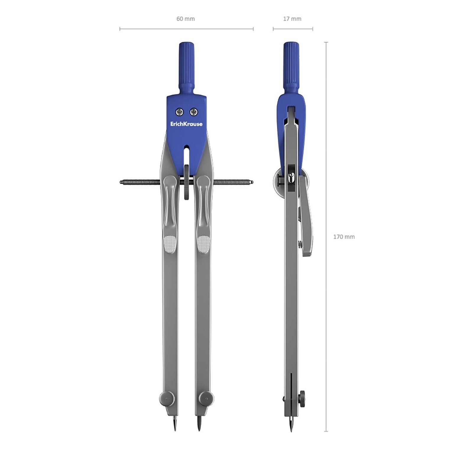Готовальня Erich Krause University, 3 предмета, 170 мм, металлический циркуль с максимальным радиусом 18 см, точилка, сменный грифель, европодвес