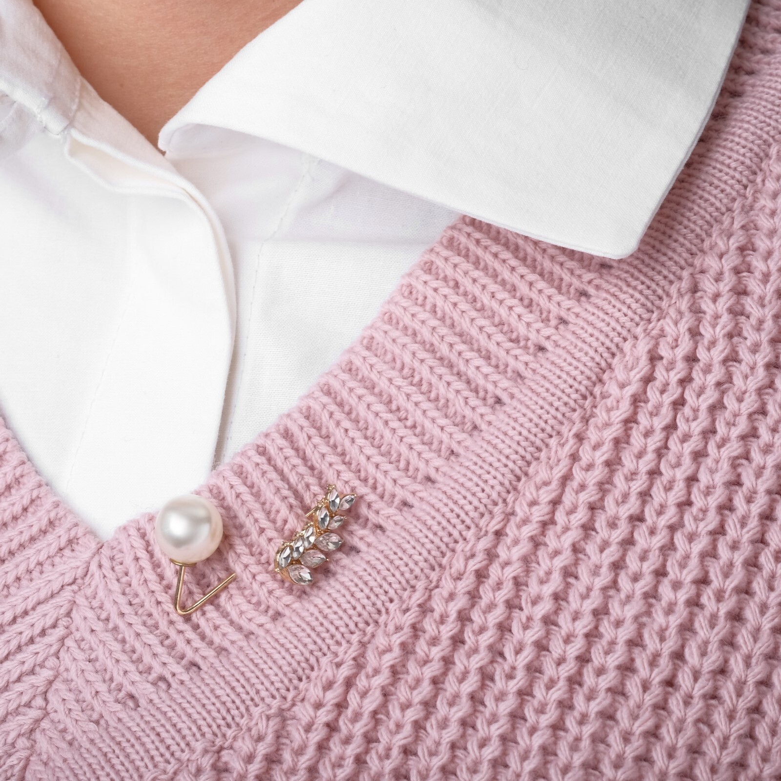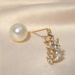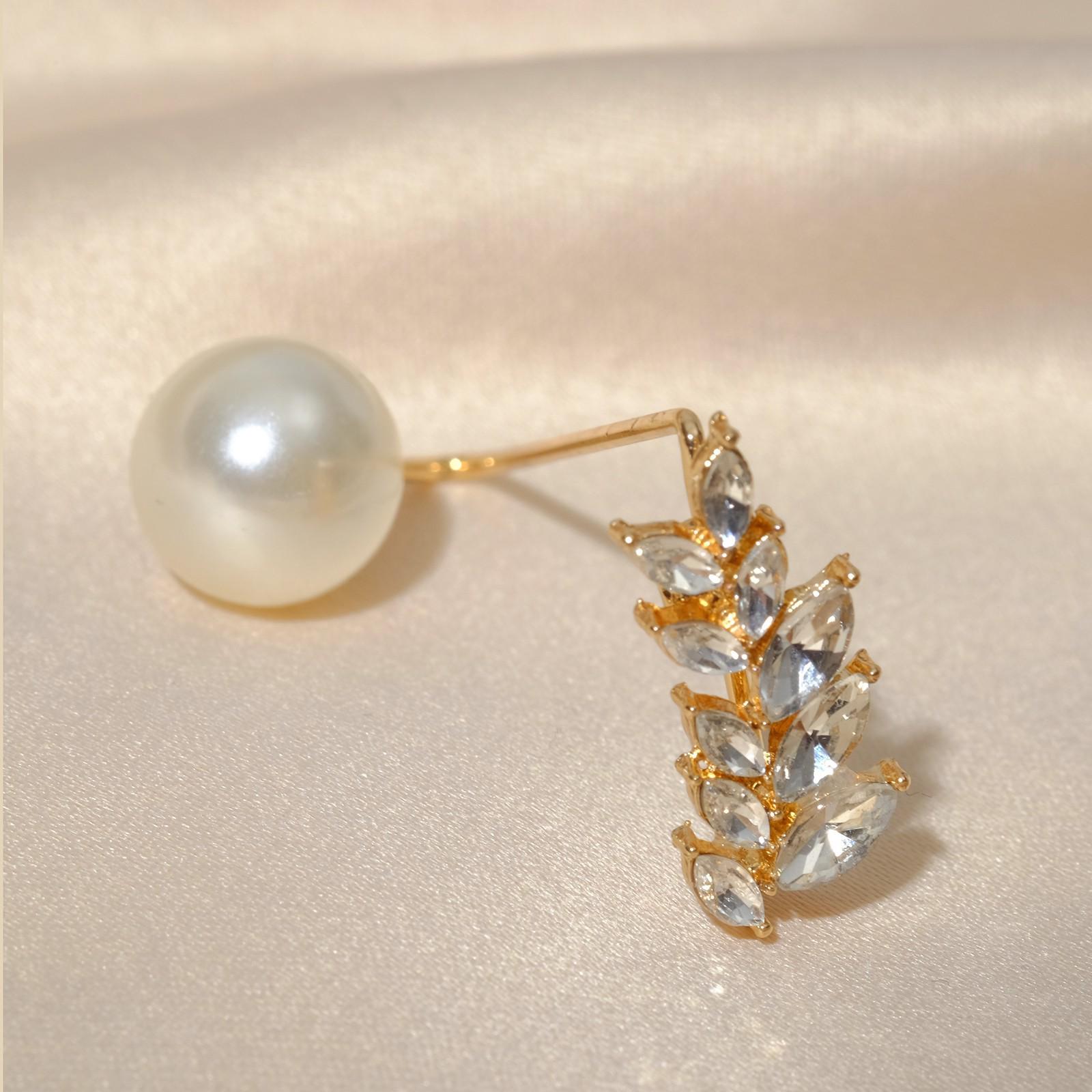 Булавка с бусиной "Колосок", цвет белый в золоте, 3,6 см