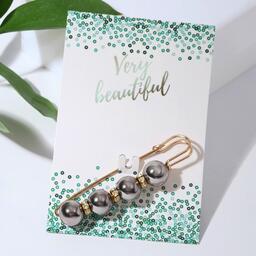 Булавка "Квартет" шар №14, 8,5см, цвет глянцевый серый в золоте