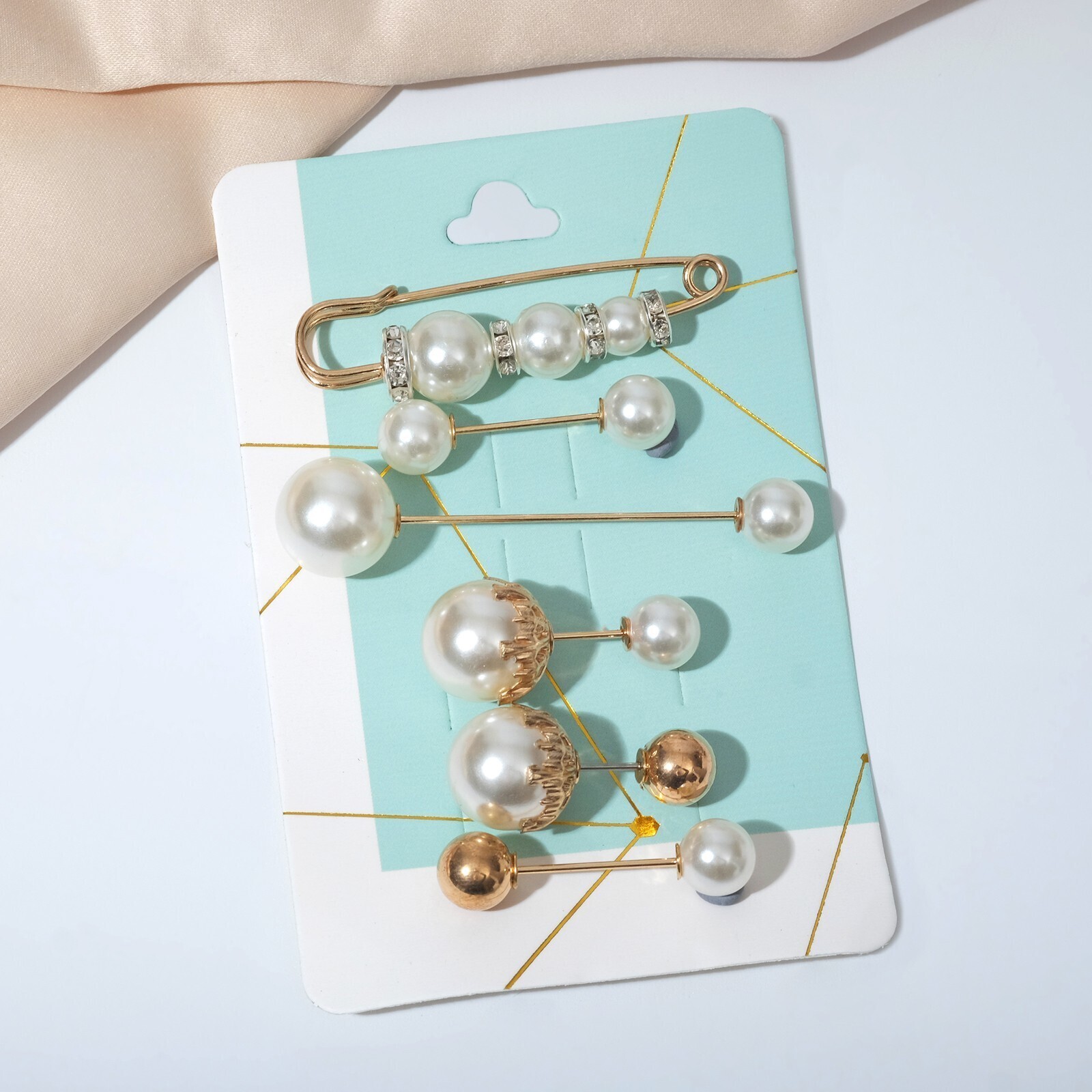 Набор булавок (6шт) "Жемчуг", цвет белый в золоте, 6,5 см