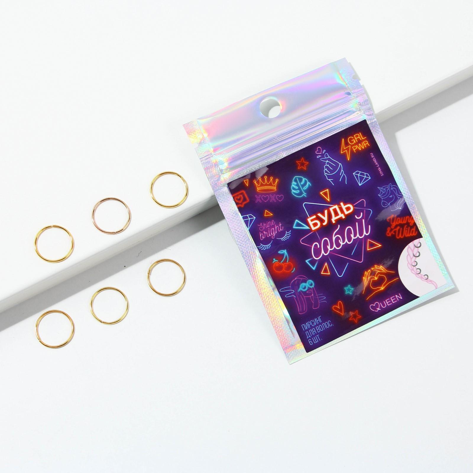 Колечки для волос «Будь собой», пирсинг, 6 шт.