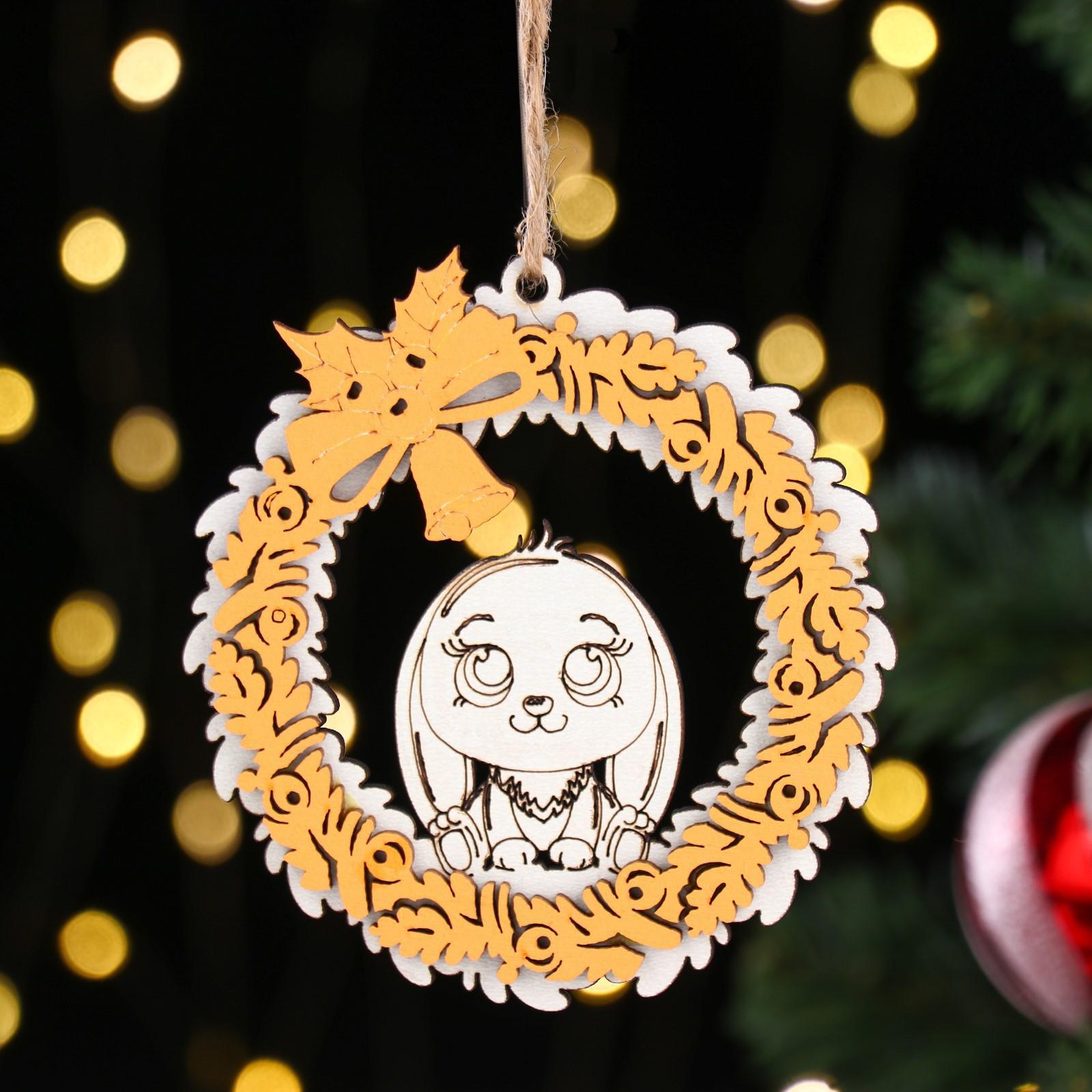 Ёлочная игрушка "Милый кролик", венок, 10х10х1 см, дерево, оранжевый, под роспись