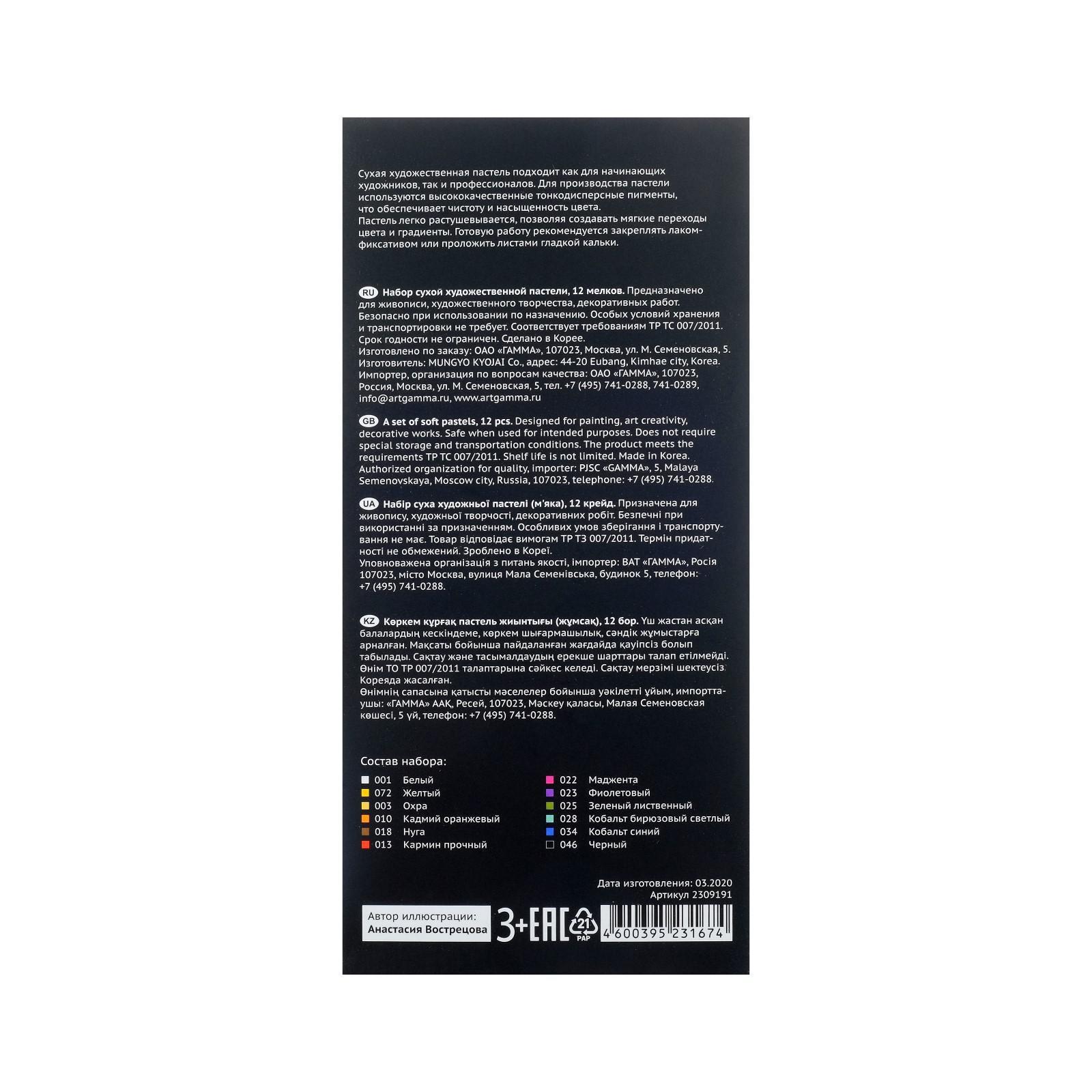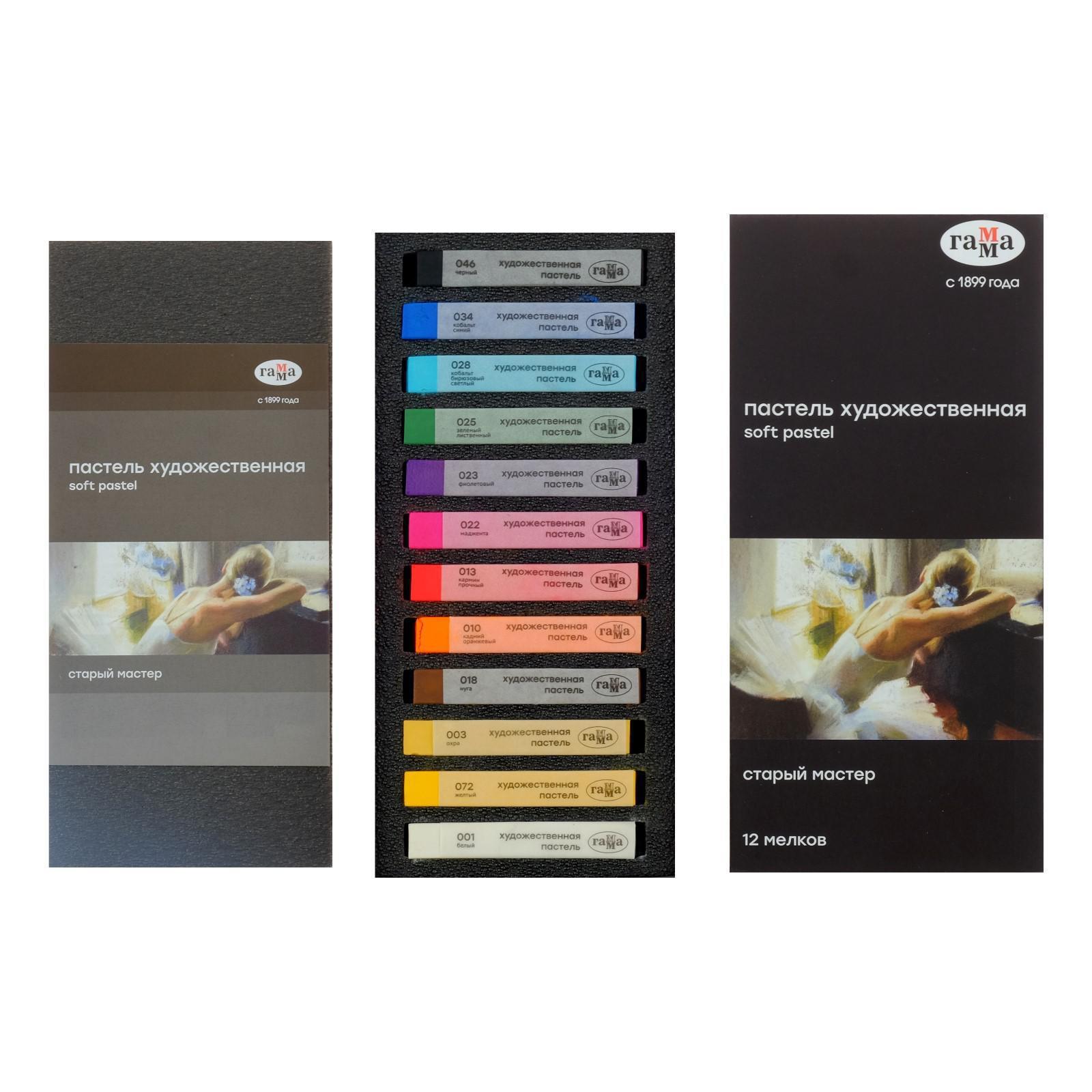 Пастель сухая, набор 12 цветов, «Гамма» «Старый мастер», базовые цвета /Корея/