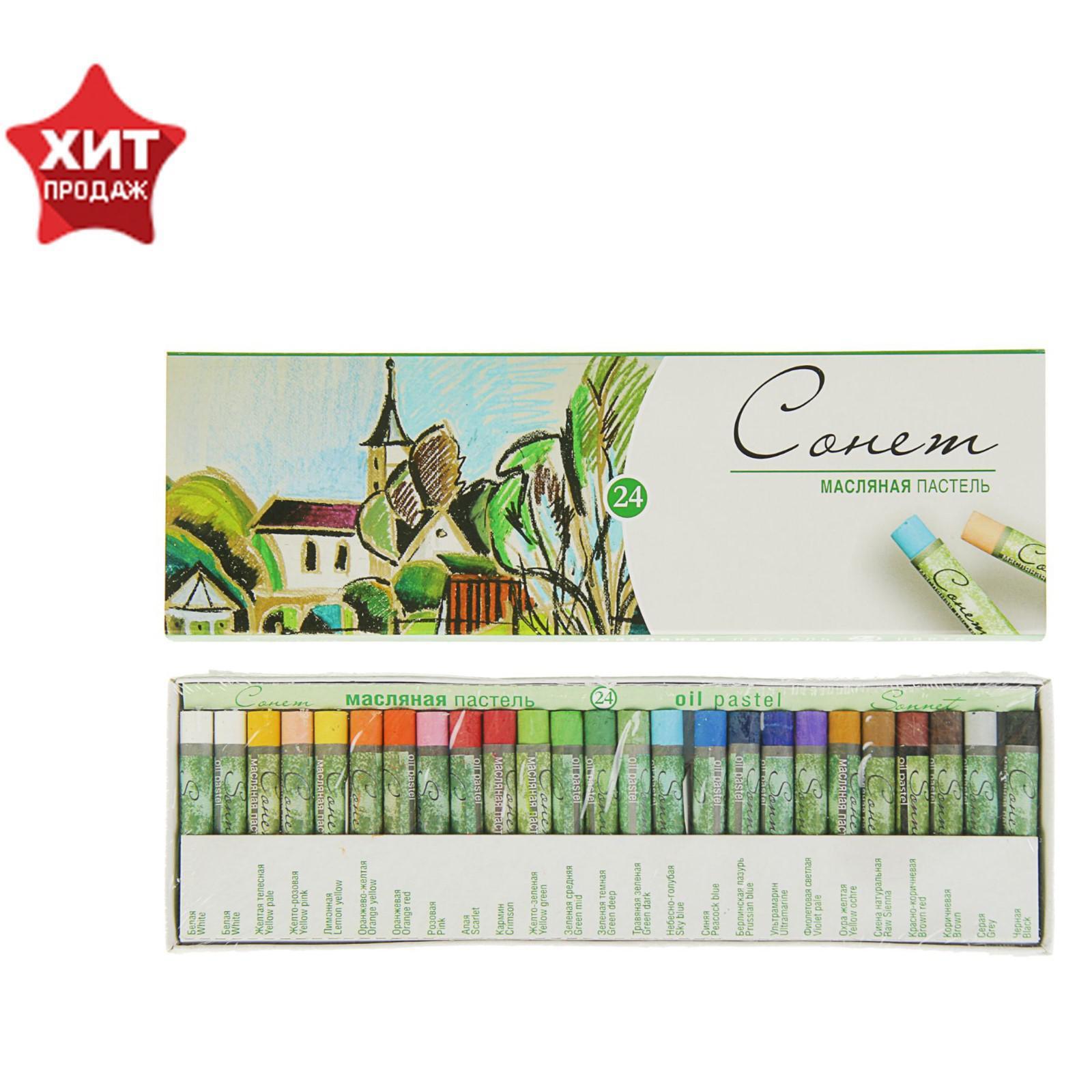 Пастель масляная, «Сонет», 24 цвета, 9/59 мм, круглая