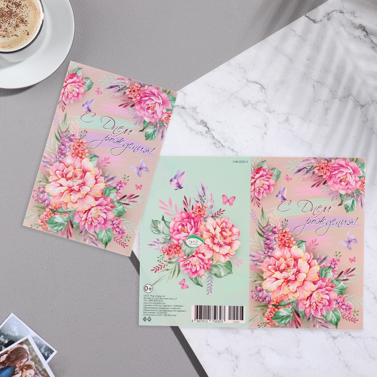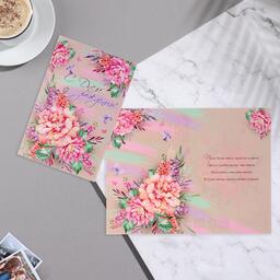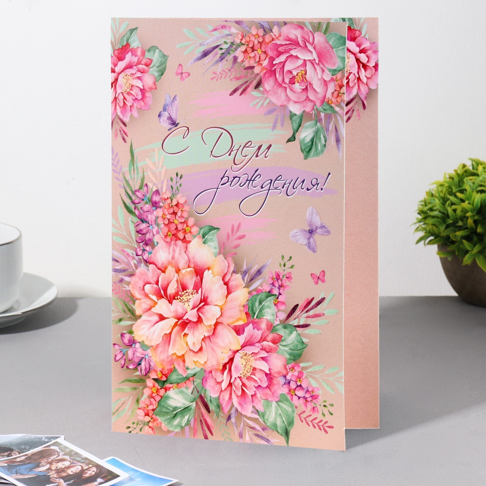 Открытка "С Днём Рождения!" конгрев, цветы, 12,5х19,4 см