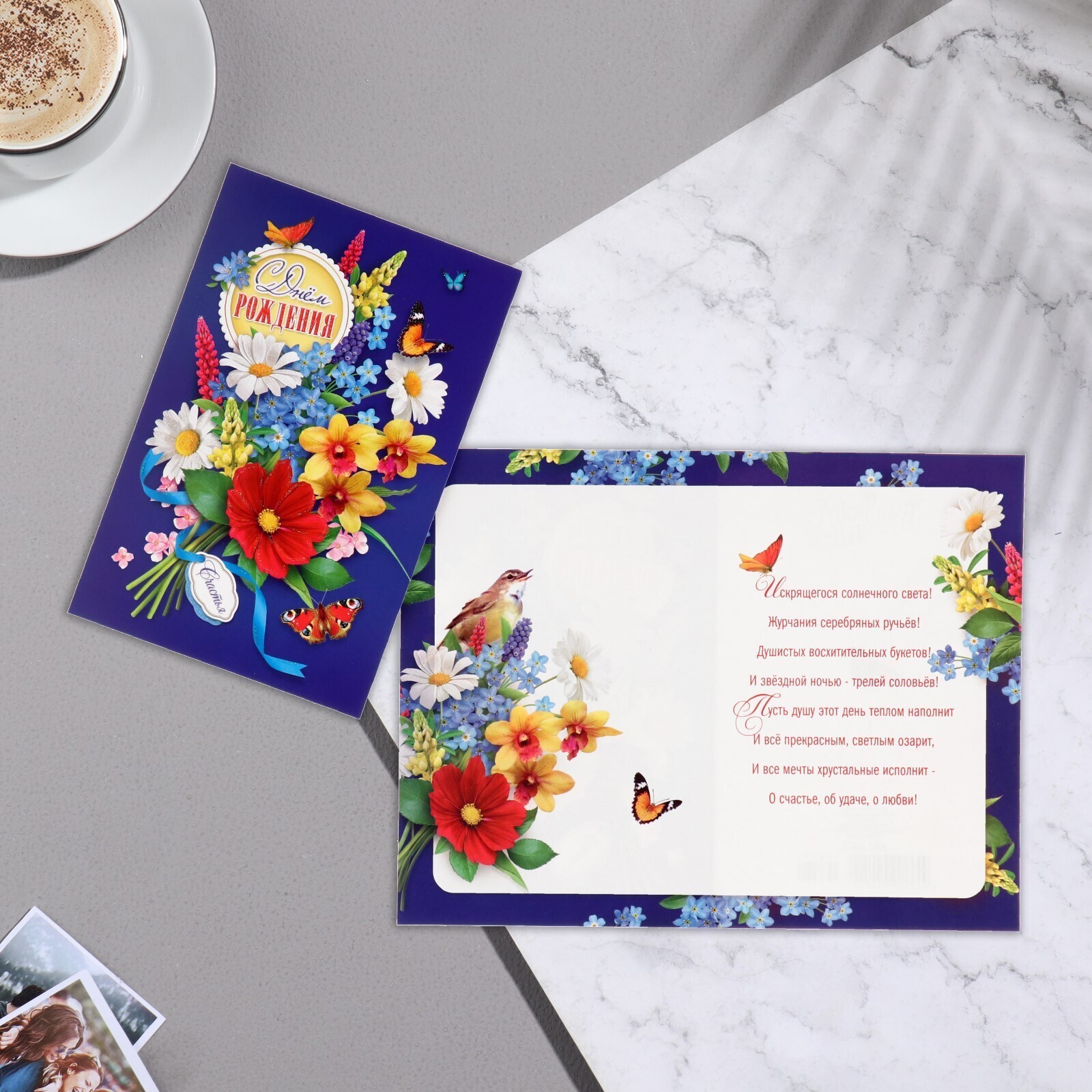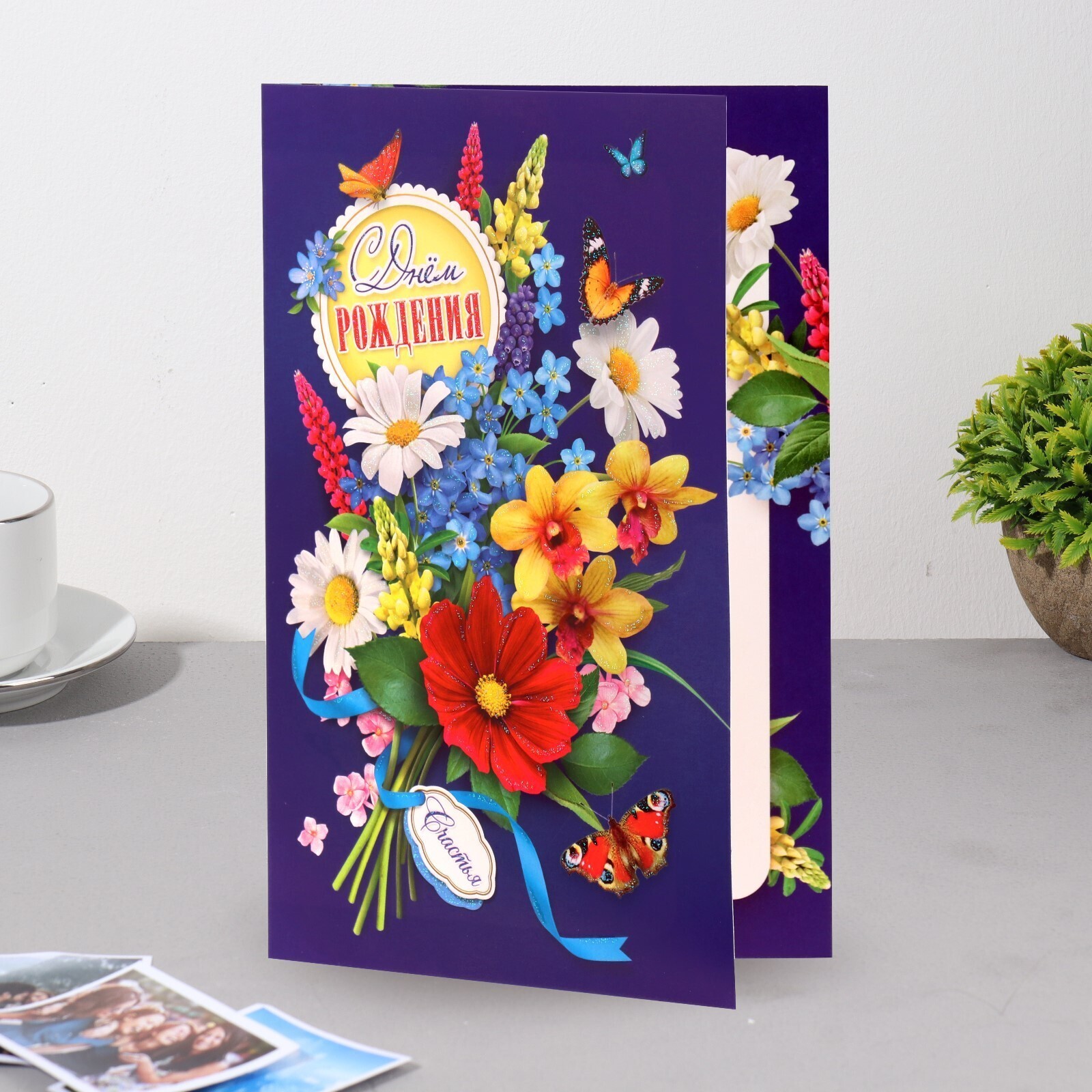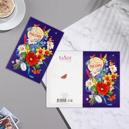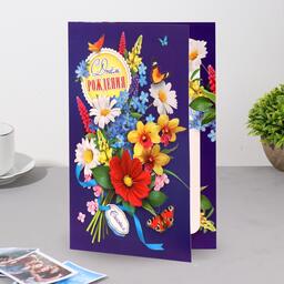 Открытка "С Днём Рождения!" глиттер, букет, А5