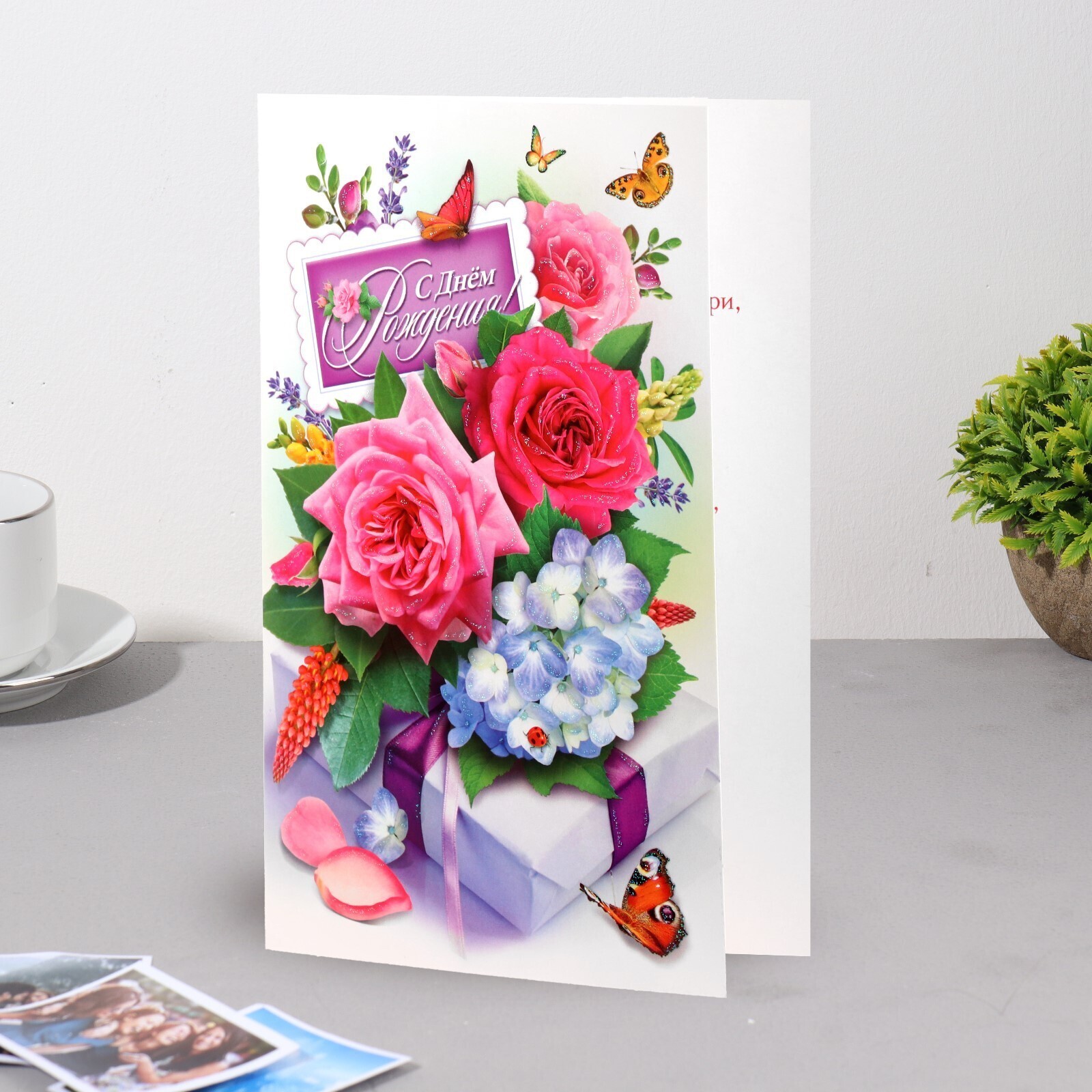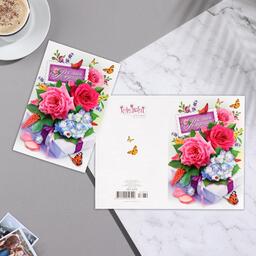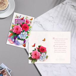 Открытка "С Днём Рождения!" глиттер, розы, бабочки, А5