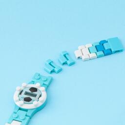 Электронные часы с ремешком-конструктором станут ярким аксессуаром вашего ребенка, съемные ремешки позволят скорретировать нужную длину (инструкция по сборке расположена на обороте упаковки). Часы показывают число, время и месяц.