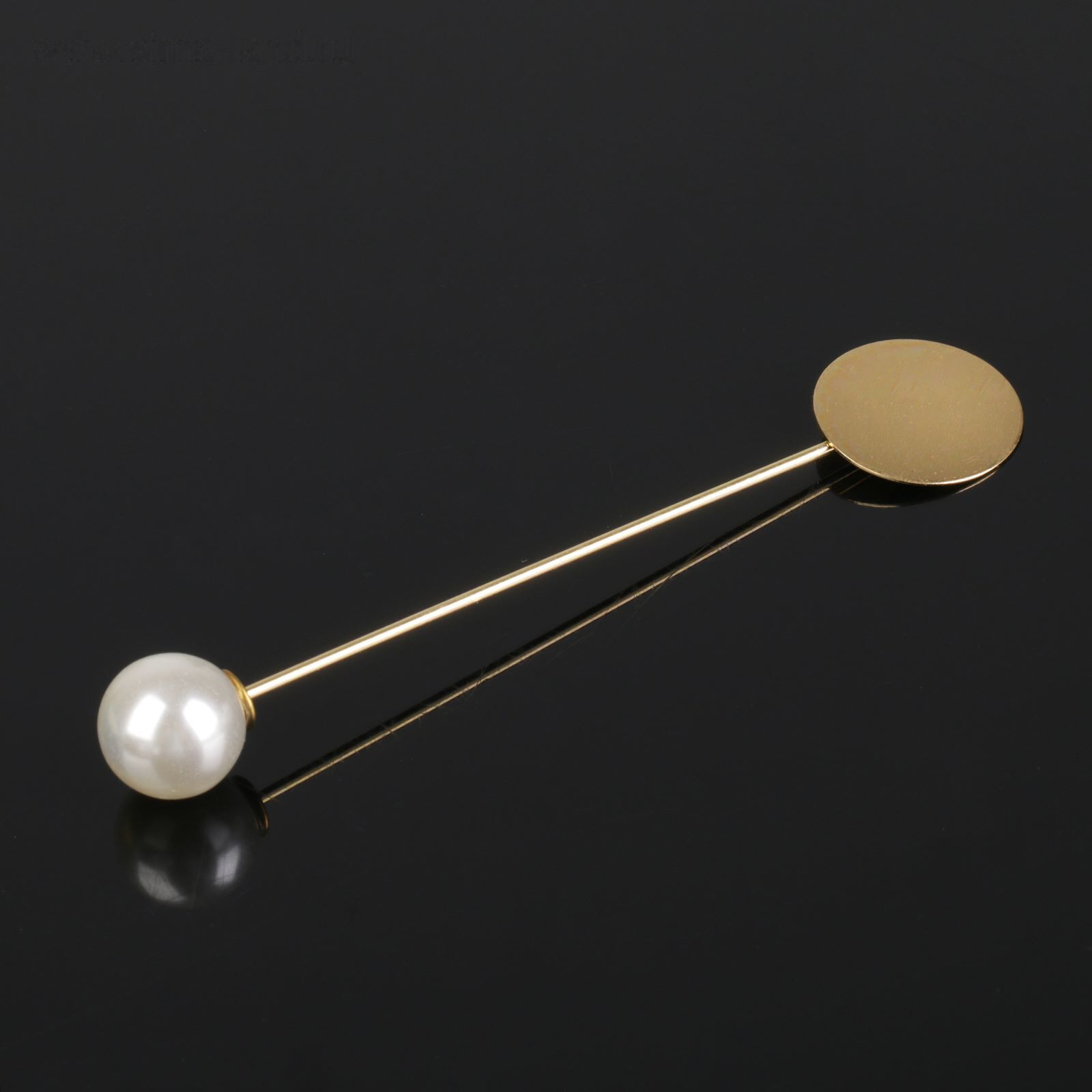 Основа "Брошь-игла" с бусиной d=1 см (набор 5шт), L=7,5 см,площадка 1,5см, цвет золото