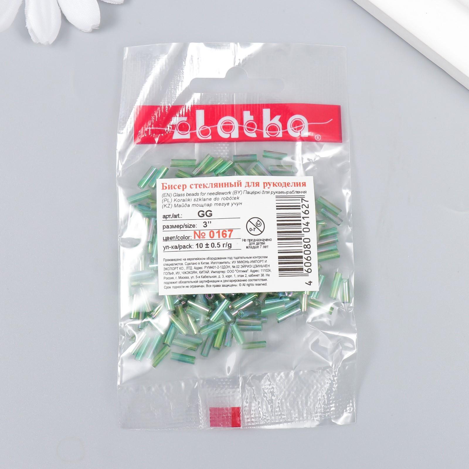Бисер "Zlatka" стеклярус 10 г, размер 3", 6 мм, №0167 зеленый 93"78558