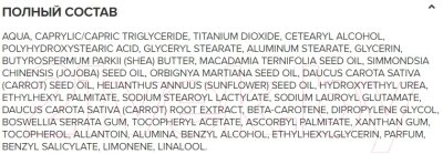 - Активные ингредиенты масло макадамии, масло бабассу, бета-каротин, масло моркови, масло босвелии