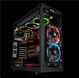 Серія Riing RGB – це просунута версія вентиляторів серії Riing. На відміну від традиційних Riing, версія RGB комплектується додатковим контролером, через який можна керувати швидкістю роботи вентилятора та вибрати бажаний колір підсвічування або включити режим, при якому кольори підсвічування будуть переливатись. Особлива форма лопат дозволяє створювати високий повітряний тиск при низькому рівні шуму. Для подальшої мінімізації рівня шуму застосовані високоякісні гідравлічні підшипники та антивібраційні кріплення.