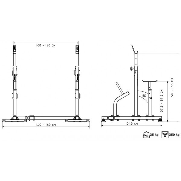 • Макс. вес нагрузки 300 кг / скамья; 350 кг / стойка /
