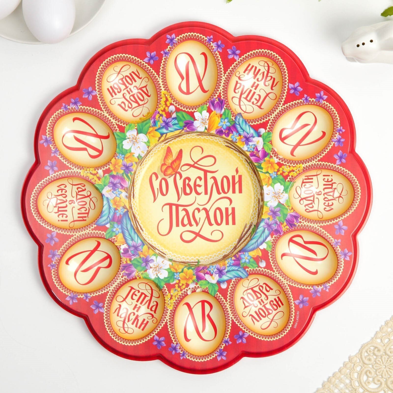 Пасхальная подставка «Со Светлой Пасхой», бабочка, на 12 яиц и кулич