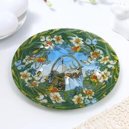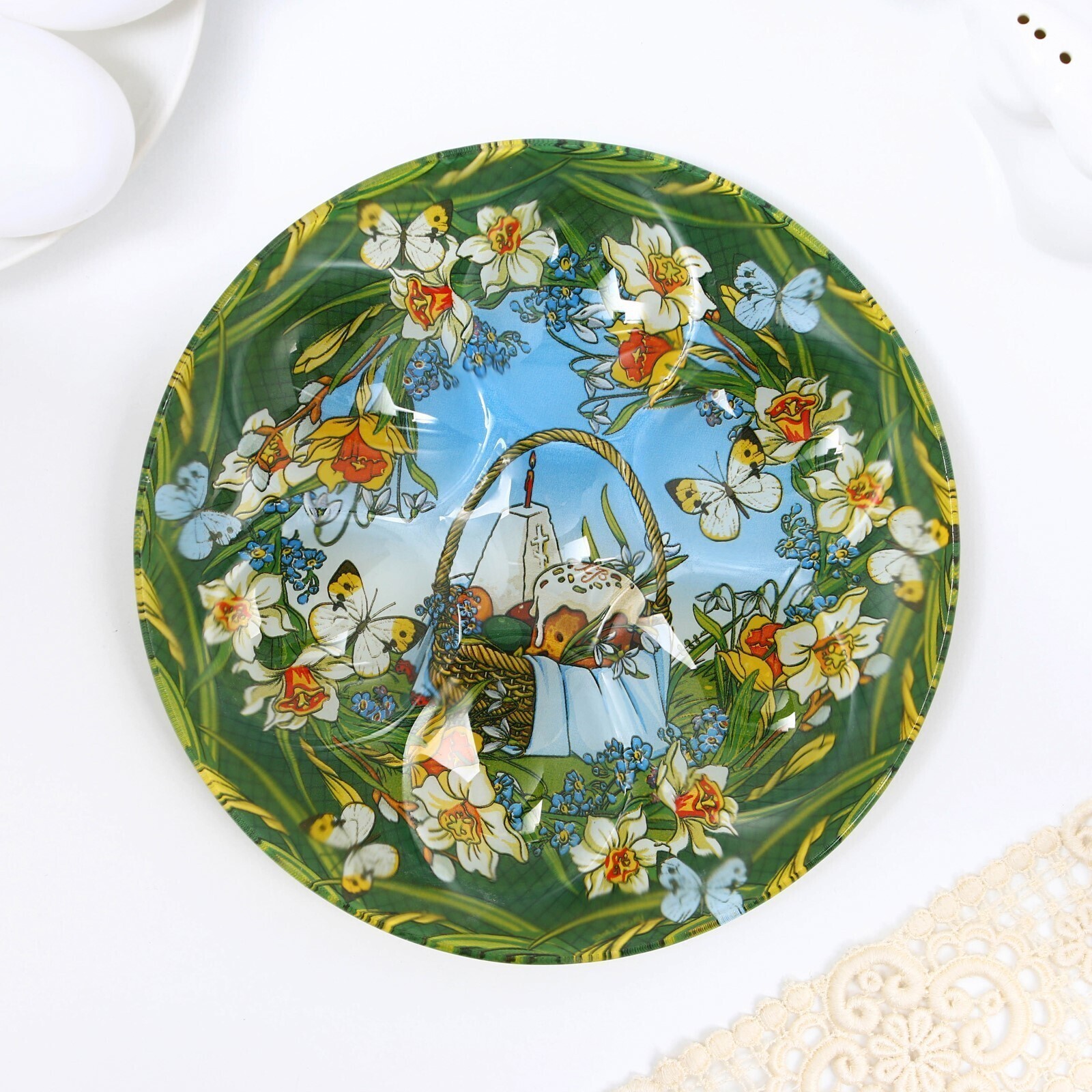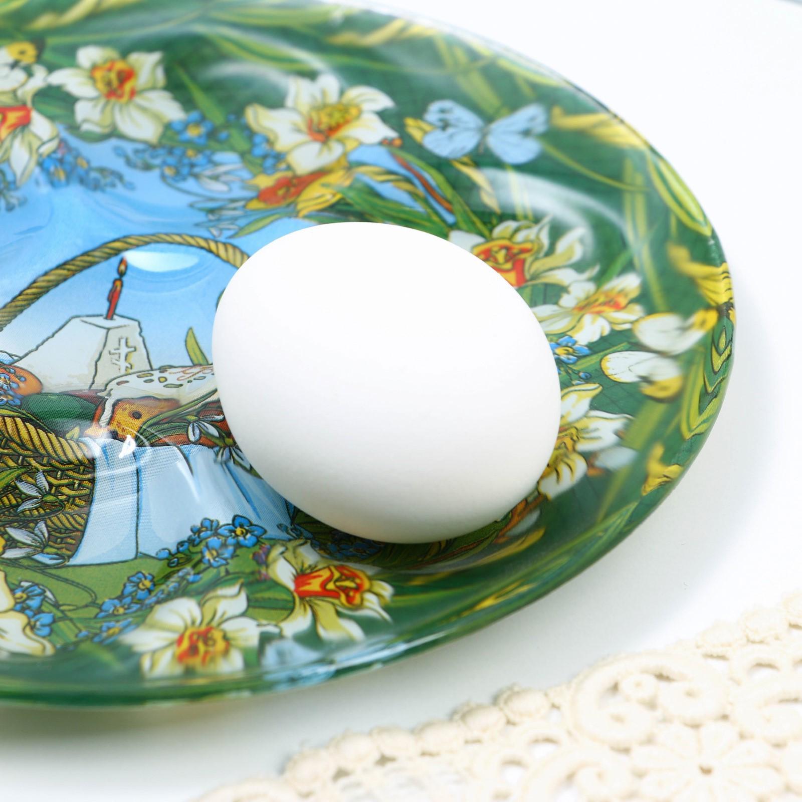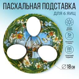 Пасхальная подставка предназначена для праздничного украшения Вашего стола в Светлый День Пасхи.По окружности подставки 6 отверстий для пасхальных яиц. Диаметр декоративной подставки - 18 см. Декоративная подставка изготовлена из стекла.