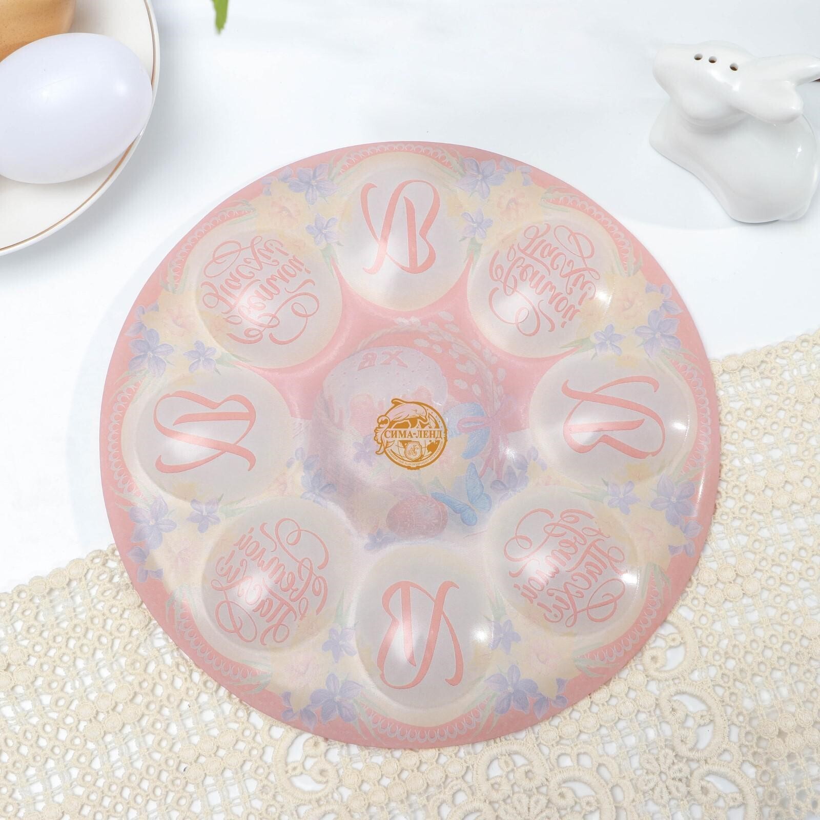 Пасхальная подставка предназначена для праздничного украшения Вашего стола в Светлый День Пасхи. По окружности подставки 8 отверстий для пасхальных яиц. Диаметр декоративной подставки - 20,5 см. Декоративная подставка изготовлена из стекла.