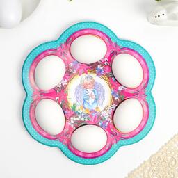 Пасхальная подставка предназначена для праздничного украшения Вашего стола в Светлый День Пасхи. По окружности подставки 6 отверстий для пасхальных яиц. Диаметр декоративной подставки - 23 см.