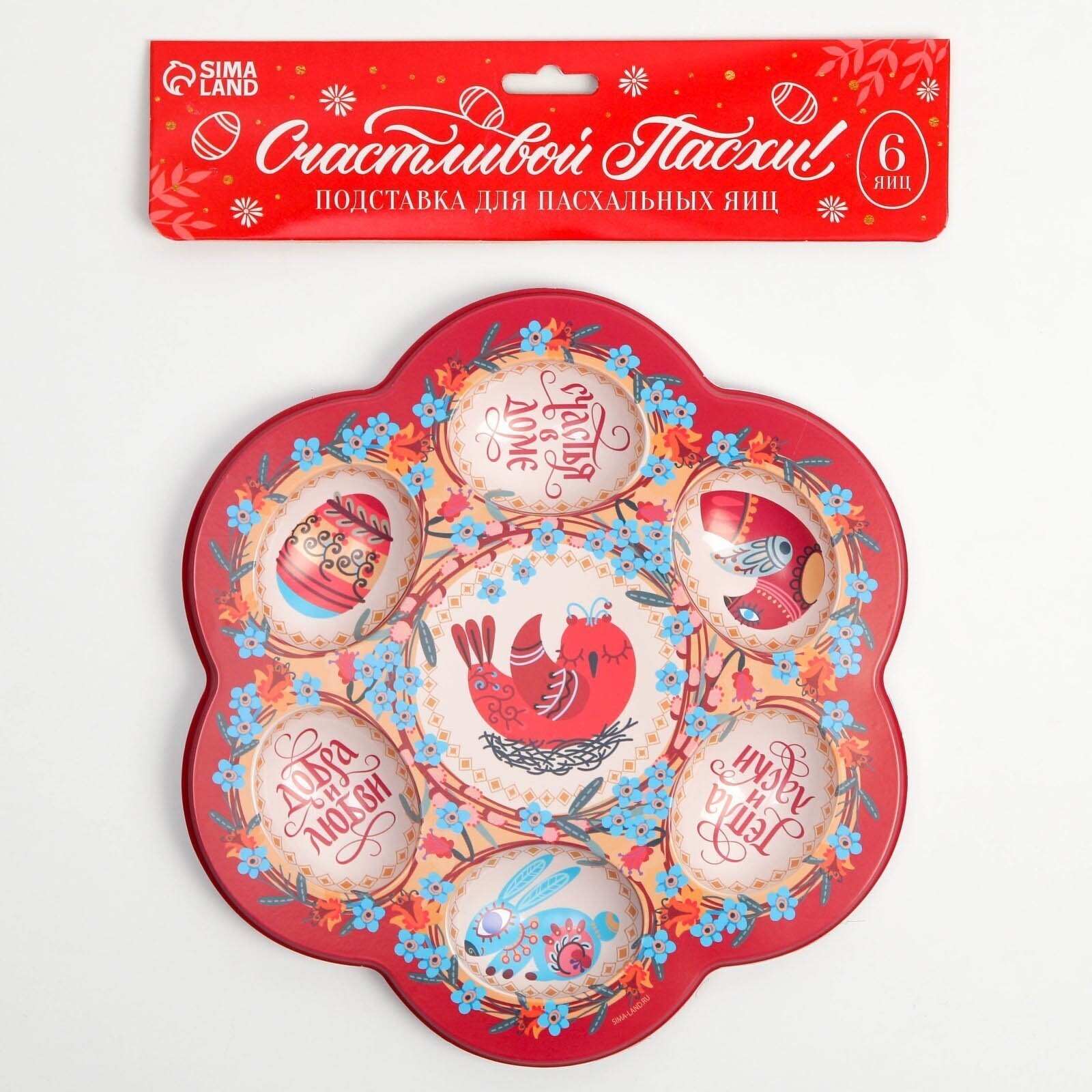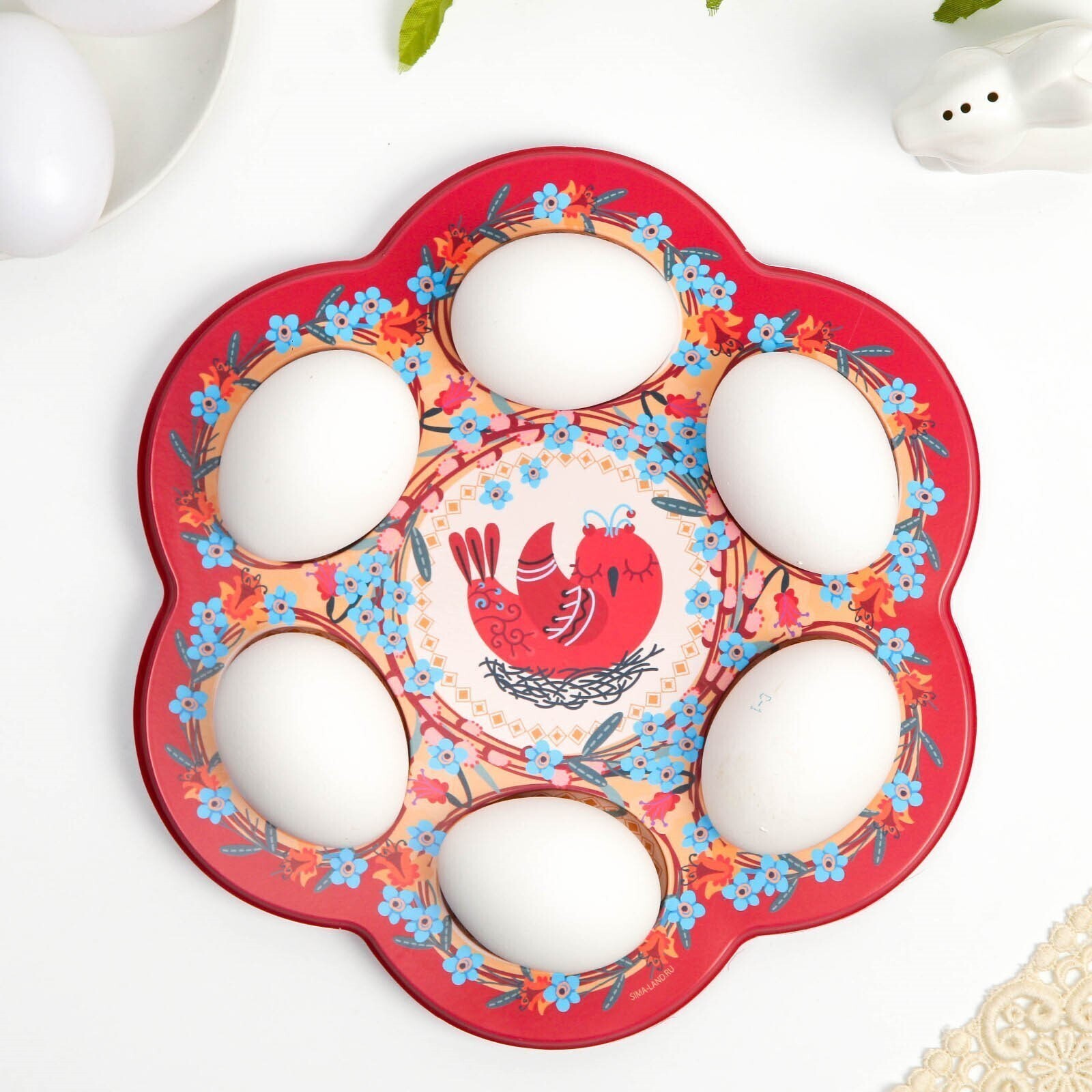 Пасхальная подставка предназначена для праздничного украшения Вашего стола в Светлый День Пасхи. По окружности подставки 6 отверстий для пасхальных яиц. Диаметр декоративной подставки - 23 см.