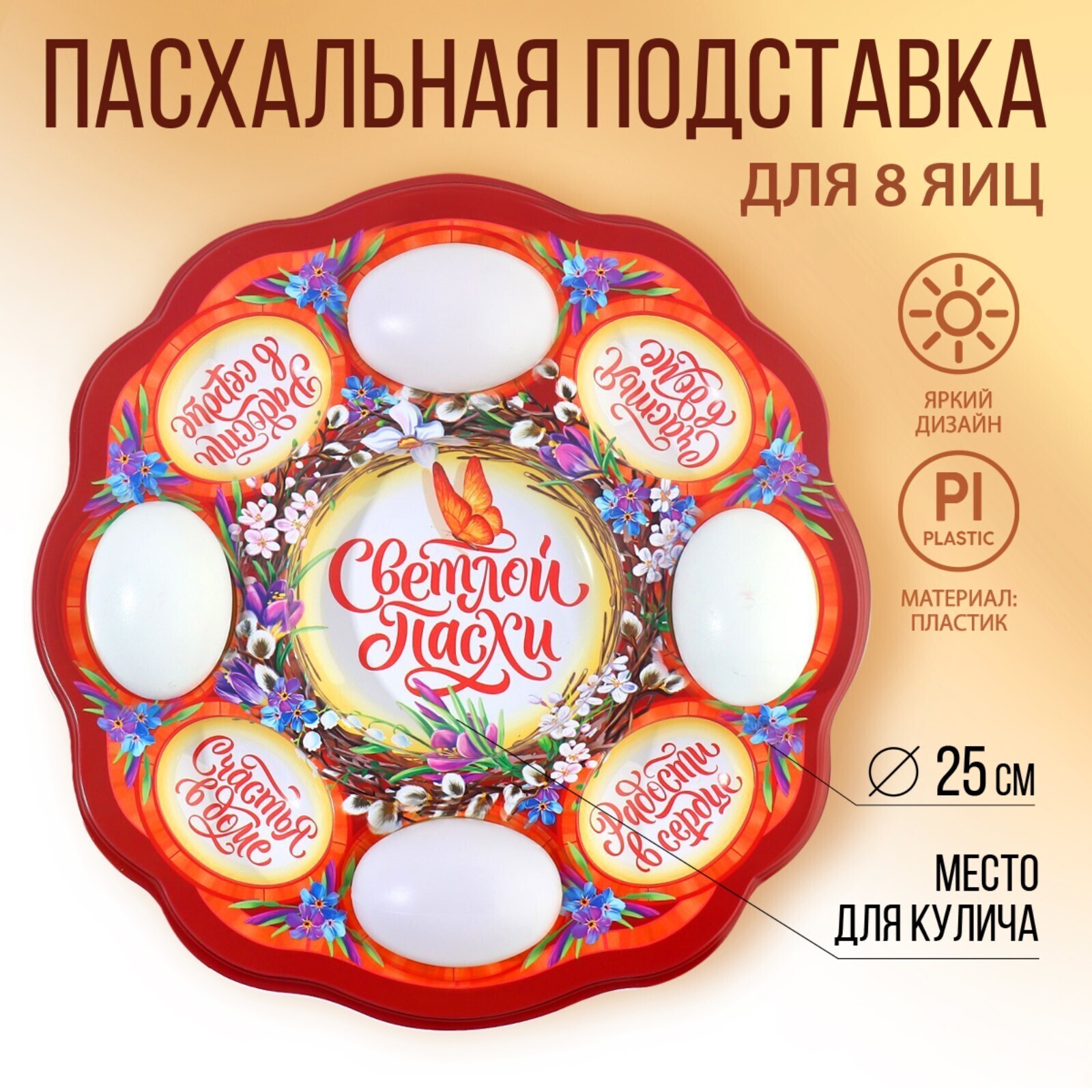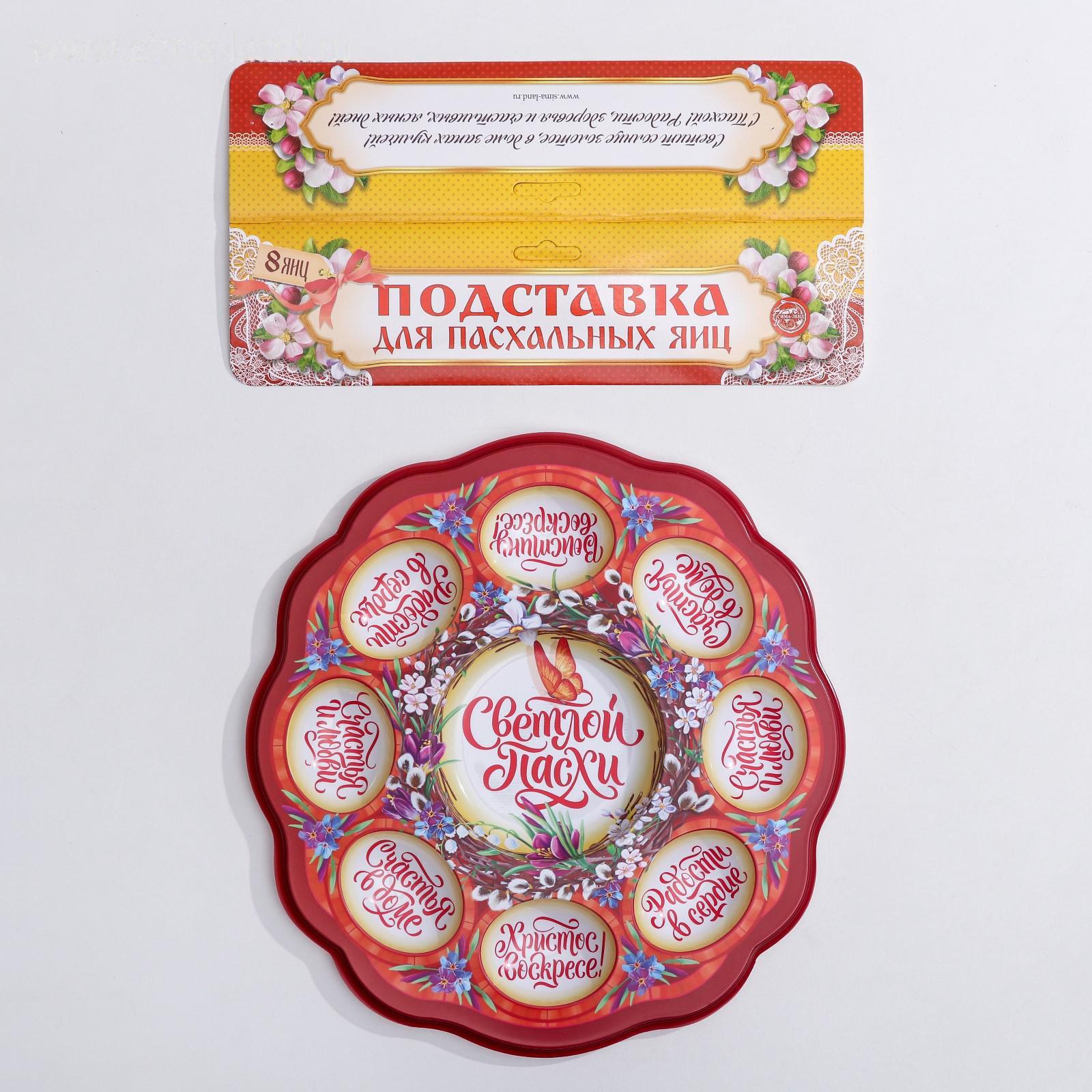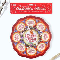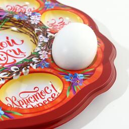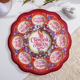 Пасхальная подставка предназначена для праздничного украшения Вашего стола в Светлый День Пасхи. В центре декоративной подставки находится углубление для пасхального кулича диаметром 9,5 см, а по окружности - 8 отверстий для пасхальных яиц. Диаметр декоративной подставки - 25 см.