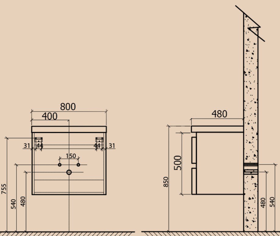Подвесная с двумя выкатными ящиками, с доводчиками