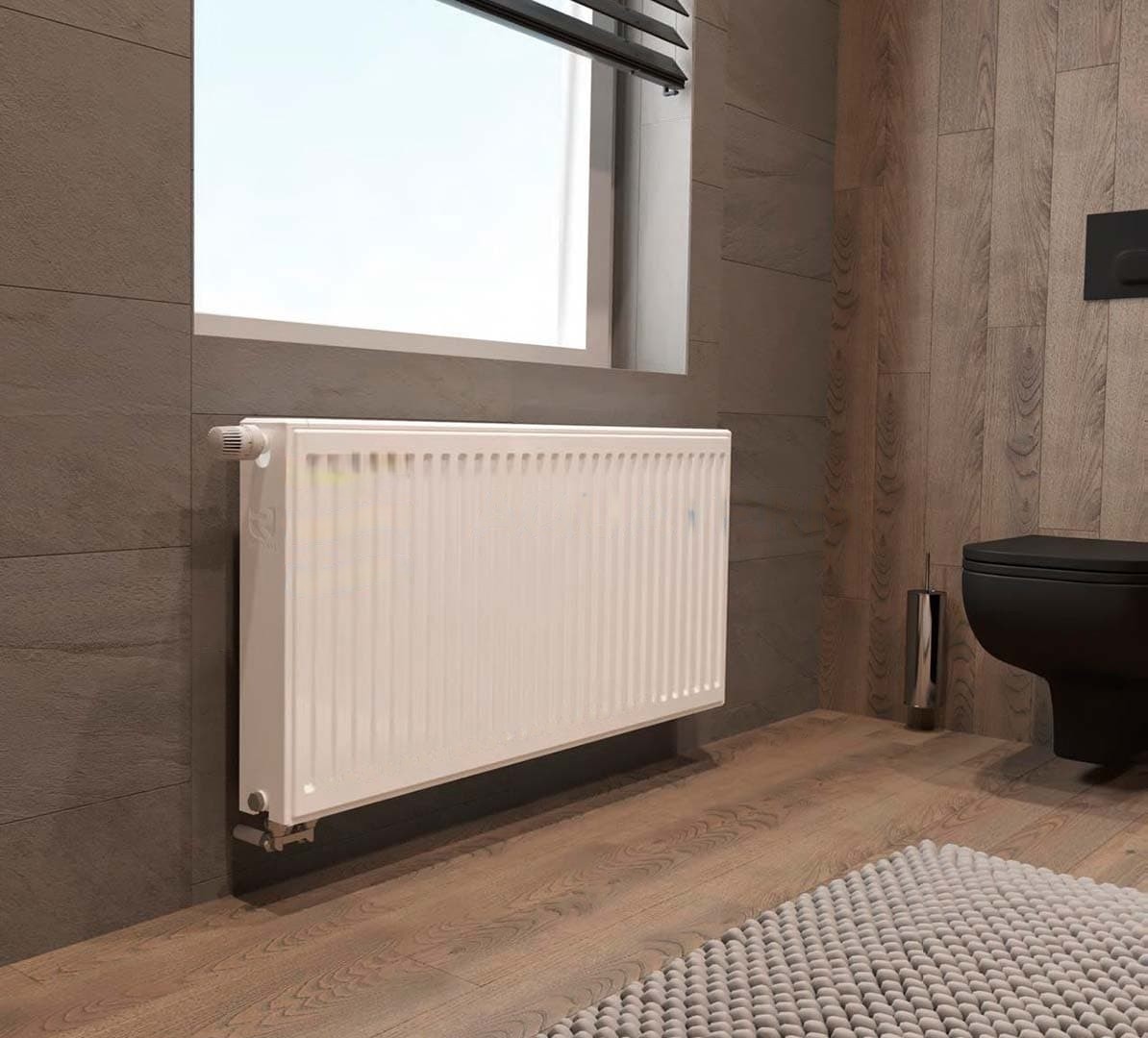 Панельный радиатор имеет эстетический внешний вид и идеально вписываются в интерьер помещения. Стандартно радиаторы окрашены в белый цвет RAL 9016. Радиаторы RUTERM можно применять как в однотрубных, так и двухтрубных системах отопления. В зависимости от типа радиаторов возможны многие варианты их подключения к системе - нижнее или боковое. Радиаторы состоят из тепловых панелей с дополнительными теплоотдающими поверхностями и оснащаются декоративными решетками с боковыми крышками. Продуманная конструкция верхней крышки (решетки) увеличивает ее надежность и устойчивость к механическим воздействиям по сравнению с обычными стальными радиаторами.