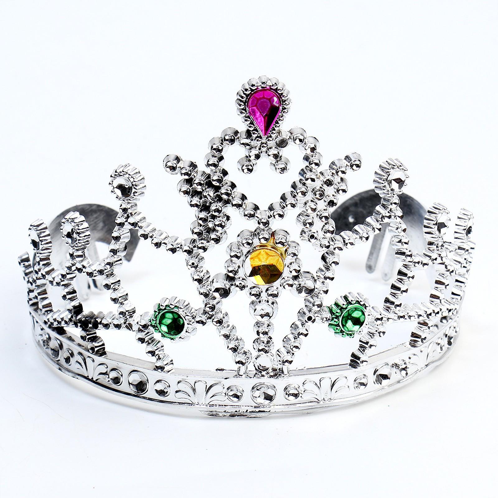 Короны — отличный вариант создания задорного настроения на детском празднике. Они хорошо держатся на голове. Необязательно покупать целый костюм, можно надеть на ребёнка корону, а детская фантазия сделает всё остальное.