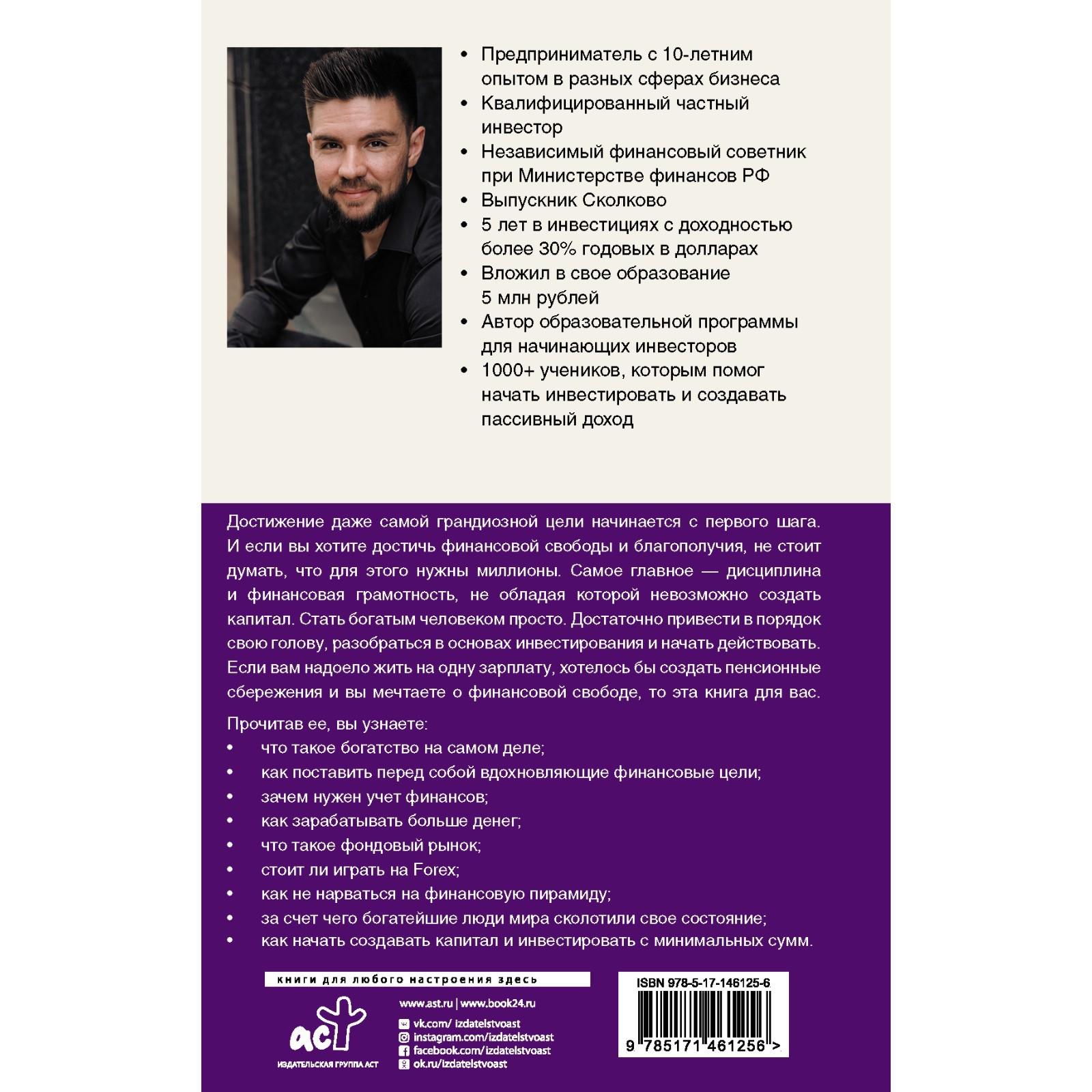 Достижение даже самой грандиозной цели начинается с первого шага. И если вы хотите достичь финансовой свободы и благополучия, не стоит думать, что для этого нужны миллионы. Самое главное — дисциплина и финансовая грамотность, не обладая которой невозможно создать капитал. Стать богатым человеком просто. Достаточно привести в порядок свою голову, разобраться в основах инвестирования и начать действовать.
