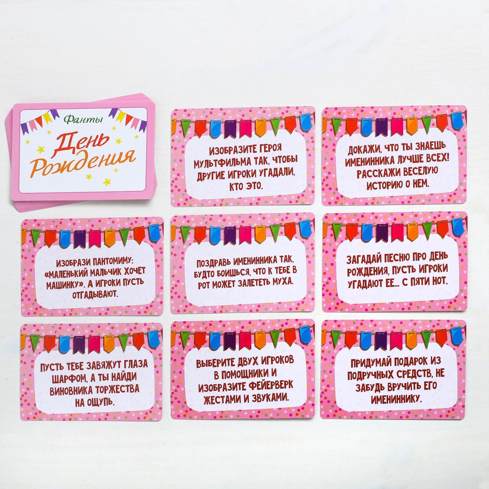 И много захватывающих заданий, которые придутся по душе не только детям, но и взрослым. Правила просты: вытягивайте карточки с фантами и выполняйте задания. Вам предстоит делать открытки имениннику с закрытыми глазами, придумывать забавные прозвища гостям и изображать поздравительные сценки. Наполните этот день улыбками и весёлым смехом!