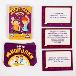 Игроки по очереди вытягивают карточки, зачитывают забавные задания и выполняют их! А если участник хорошо справился с фантом, то он забирает его себе.