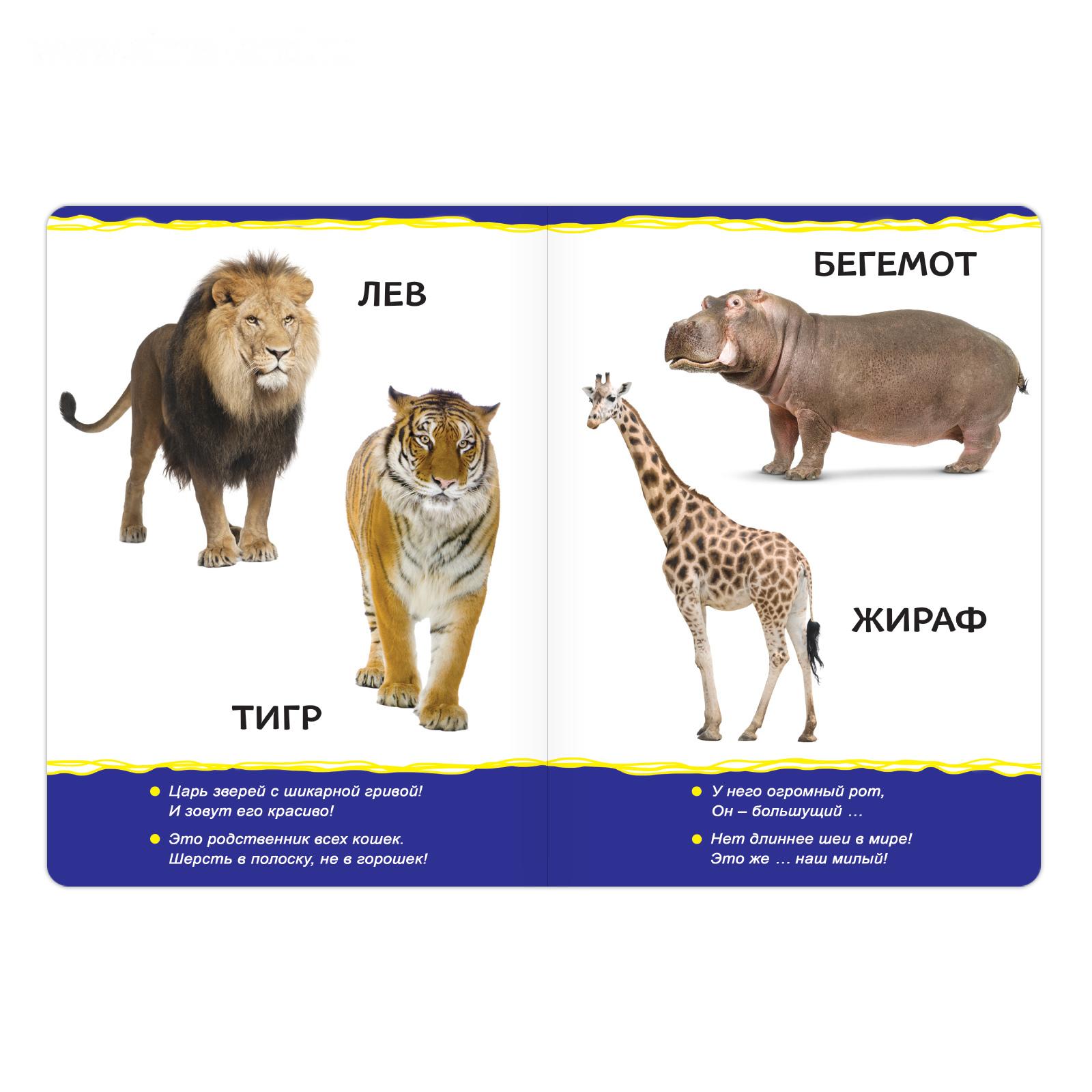 В издании вы найдёте фотографии с загадками в стихотворной форме — изучать обитателей лесной чащи и других уголков земного шара будет легко и занимательно. Ребёнок запомнит всех зверей и познакомится с увлекательными подробностями их жизни.
