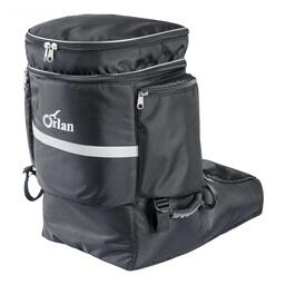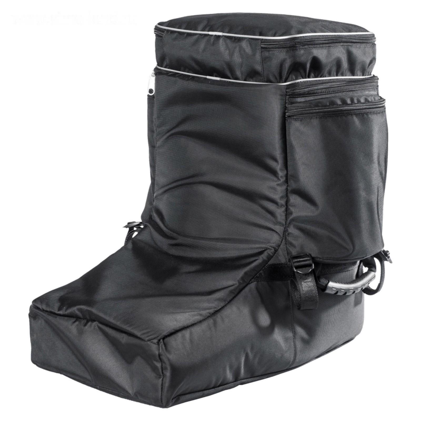 Специальная форма позволяет максимально использовать пространство под сиденьем. По бокам расположены карманы для быстрого доступа к необходимым вещам. Под карманами расположены удобные ручки с усилением для переноски. Крепление к cнегоходу при помощи строп. В верхней части расположен отсек под чехол (чехол приобретается отдельно) для снегохода. Чехол пристёгивается к карману на застёжки "Квик Лок".