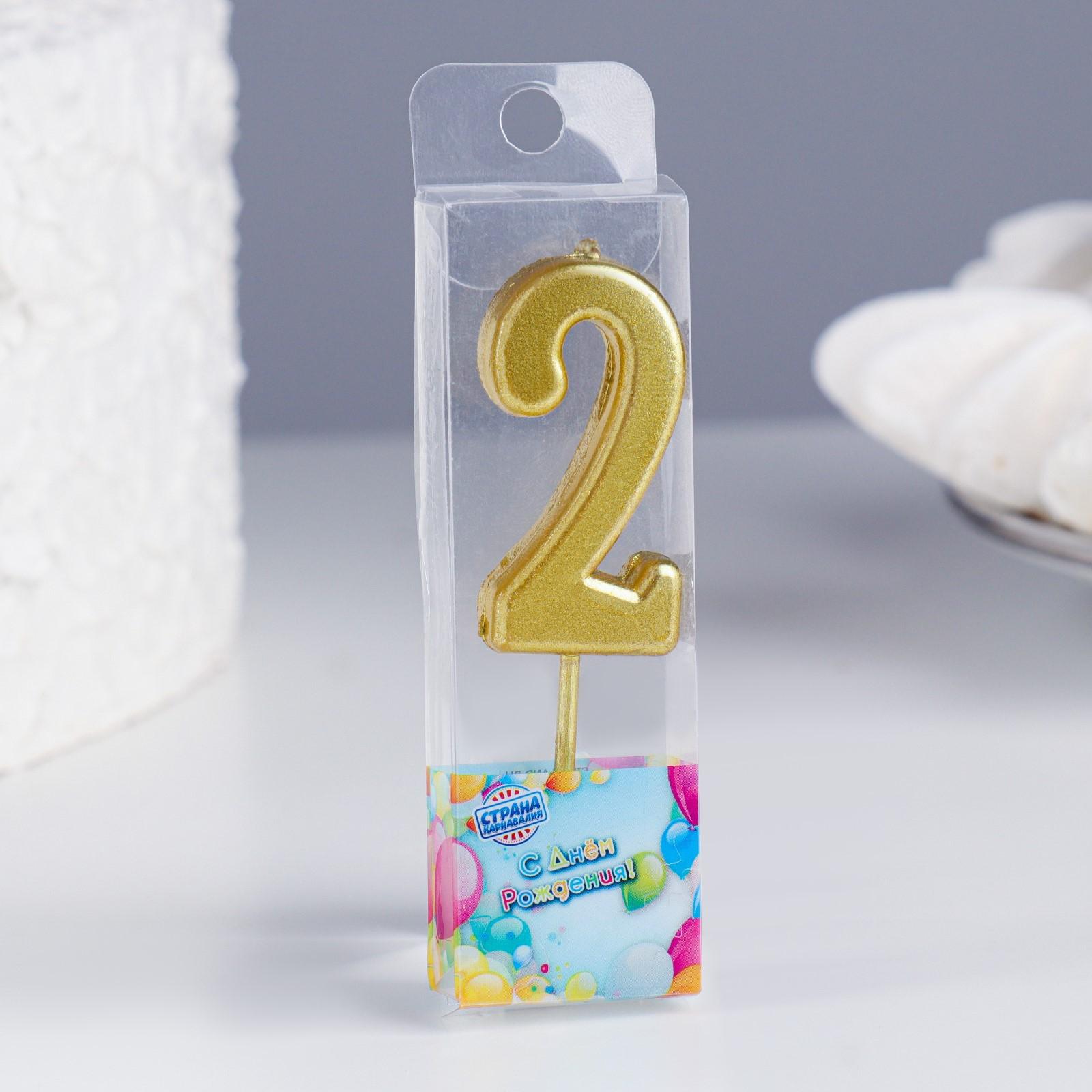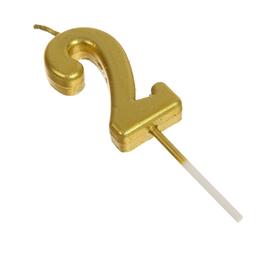 Свеча в торт на шпажке, цифра 2, золотой, 4.5х2.5 см