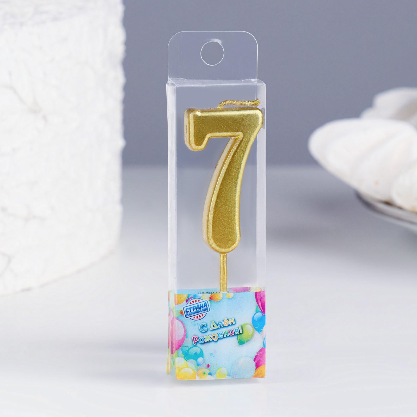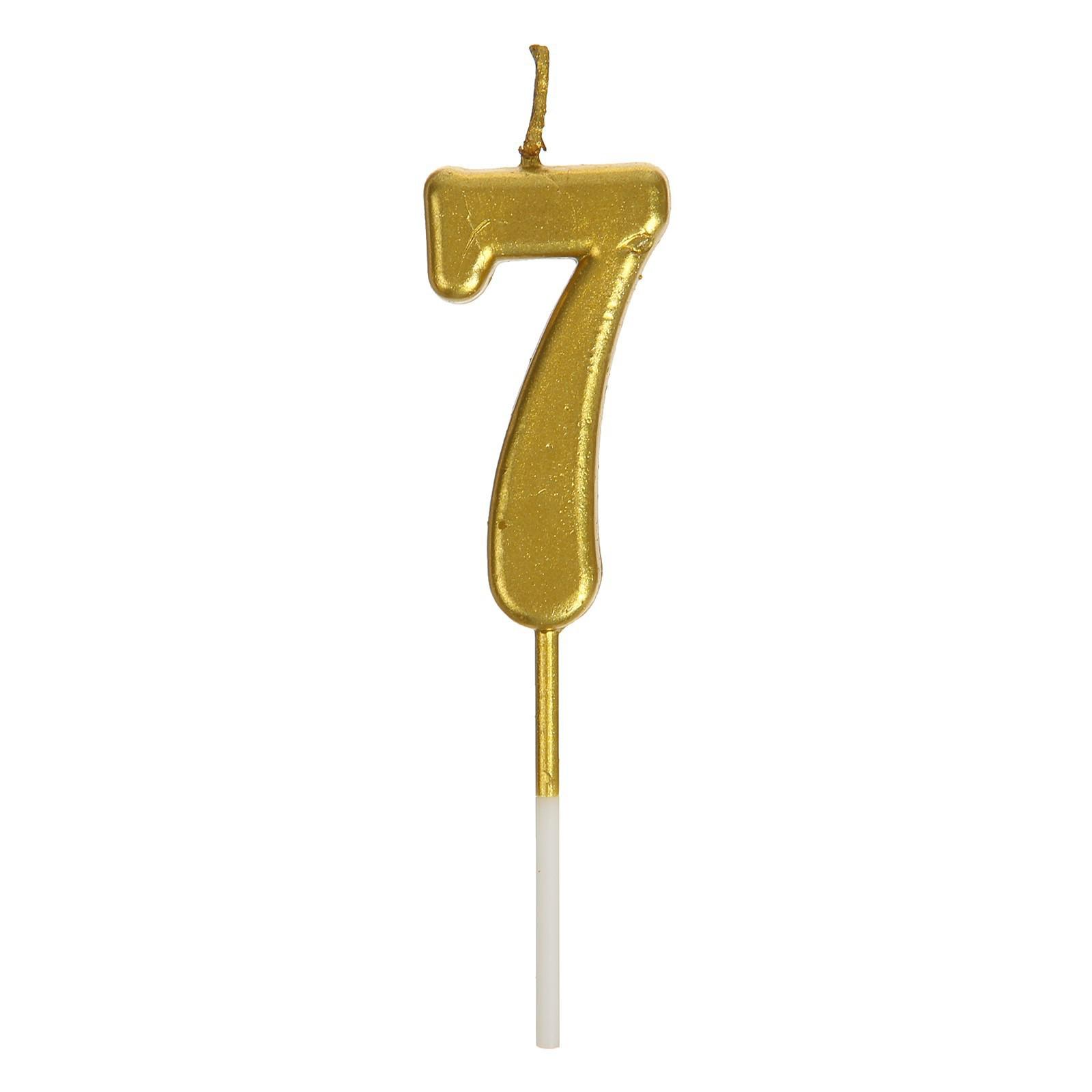 Свеча в торт на шпажке, цифра 7, золотой, 4.5х2.5 см