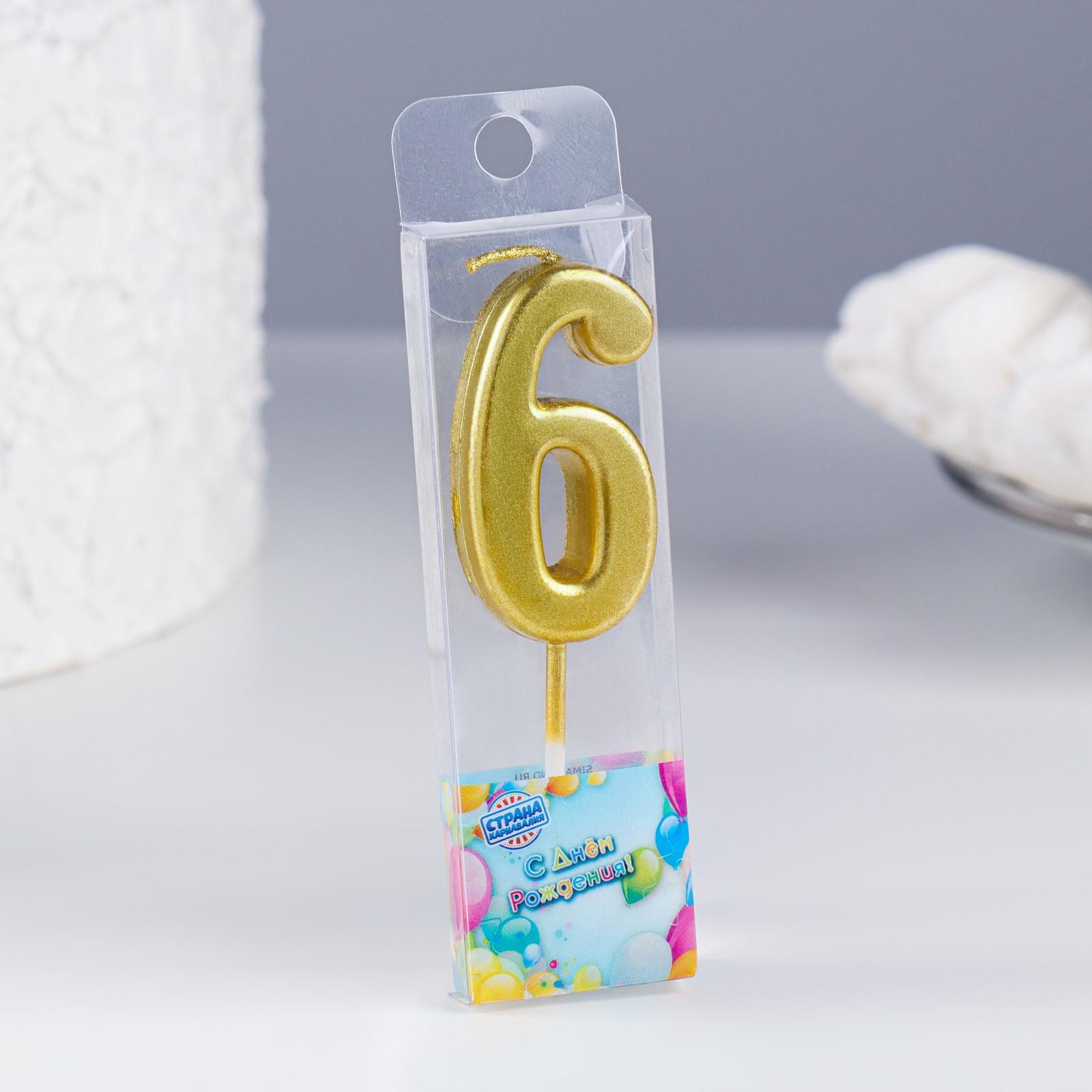 Свеча в торт на шпажке, цифра 6, золотой, 4.5х2.5 см