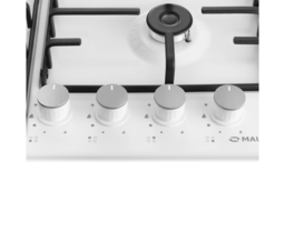Регулирование подачи газа и электроподжиг конфорок происходит с помощью поворотных ручек из термостойкой пластмассы. Для простоты использования около каждой ручки нанесены информационные изображения: используемая конфорка, подача газа выключена, электроподжиг, максимальное пламя и минимальное пламя.