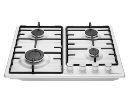 Панель выполнена из металла, покрытого термостойкой прочной эмалью белого цвета. Четыре стандартные конфорки мощностью 1000 Вт, 1700 Вт, 1700 Вт и 2600 Вт. Конфорки спроектированы таким образом, что огонь не перегревает ни эмалированные решетки, ни ручки управления.