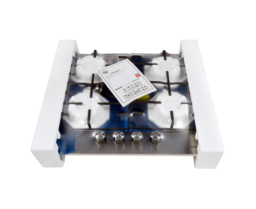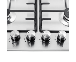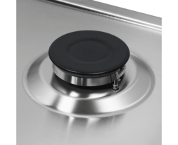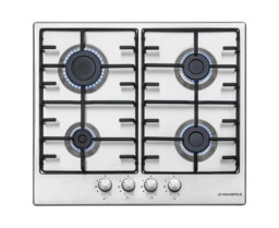 Панель выполнена из полированной нержавеющей стали. Четыре стандартные конфорки мощностью 1000 Вт, 1700 Вт, 1700 Вт и 2600 Вт. В данной модели установлены высококачественные итальянские горелки «Sabaf». Конфорки спроектированы таким образом, что огонь не перегревает ни эмалированные решетки, ни ручки управления.