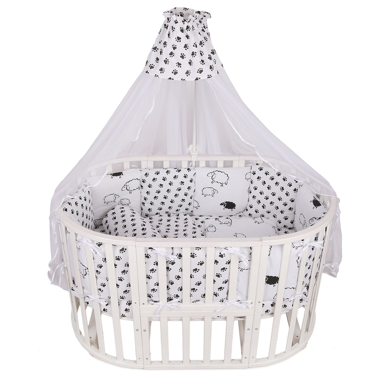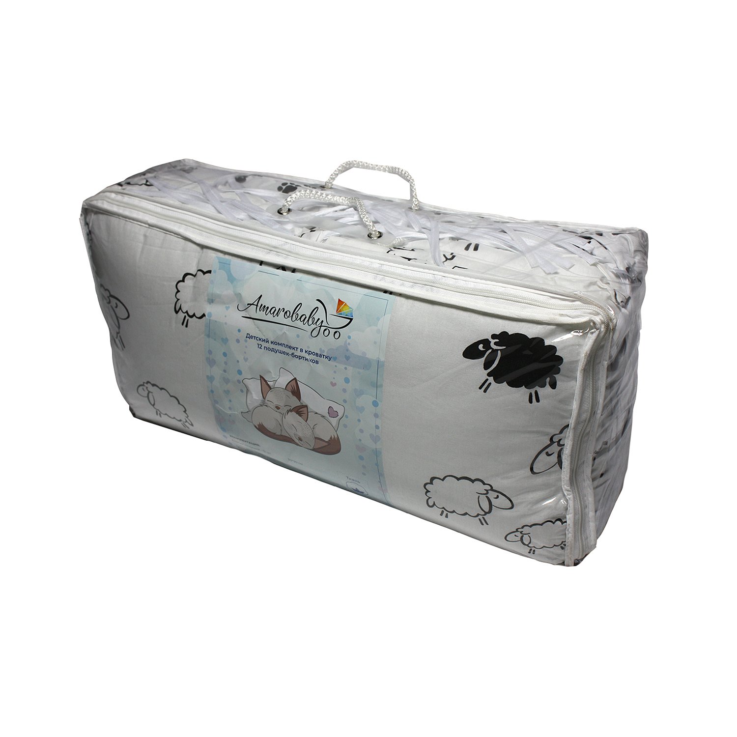 Бортик в кроватку AmaroBaby 12 предметов HOME ELITE белый черный Борт HOME ELITE