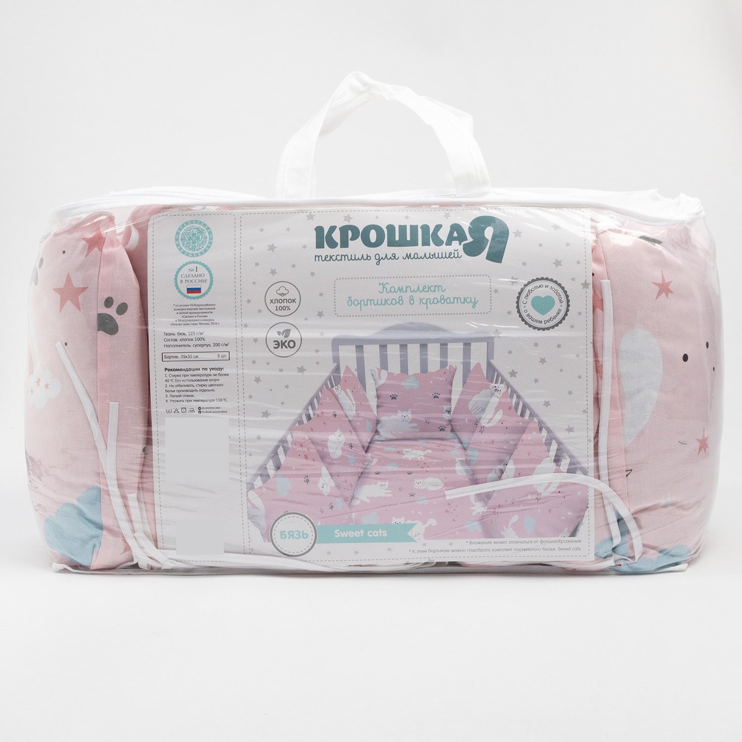 Бортики в кроватку Крошка Я Sweet cats 35х35 см - 8 шт 6627568