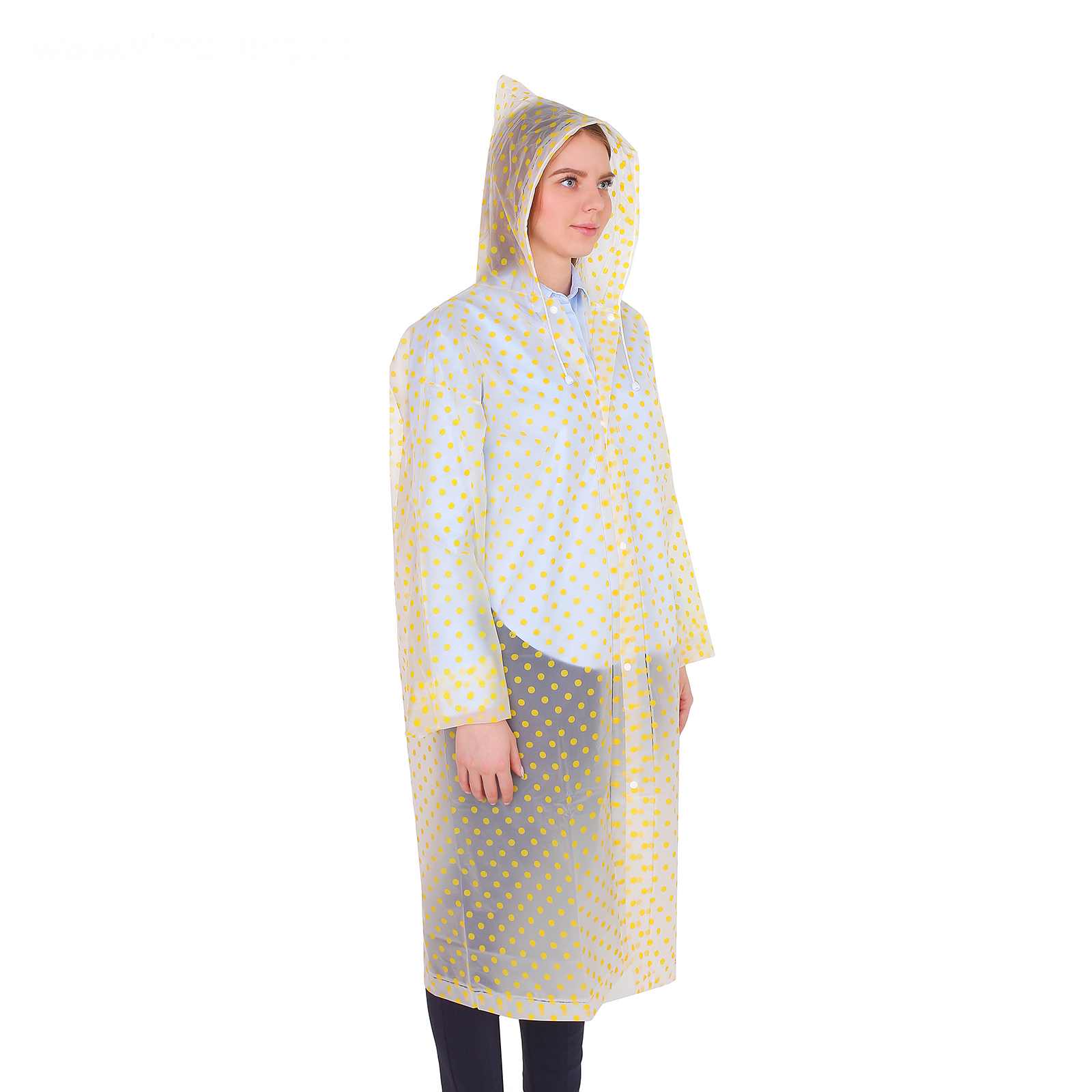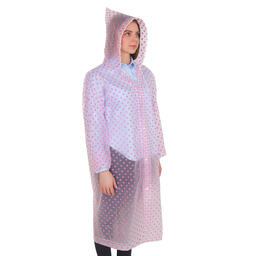 В стильном плаще в горошек под ливнем не будет повода для грусти. Своим забавным принтом он поднимет настроение вам и окружающим. Возьмите его с собой, сверните и уберите в сумочку или карман — в сложенном виде он занимает мало места. С дождевиком руки останутся свободными - не нужно брать с собой зонтик.
