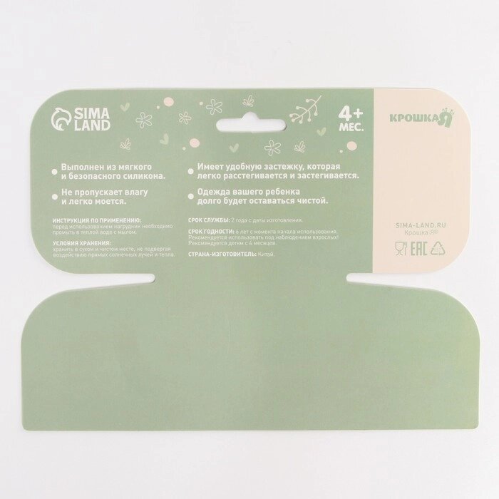 Нагрудник силиконовый с карманом, цвет бирюзовый