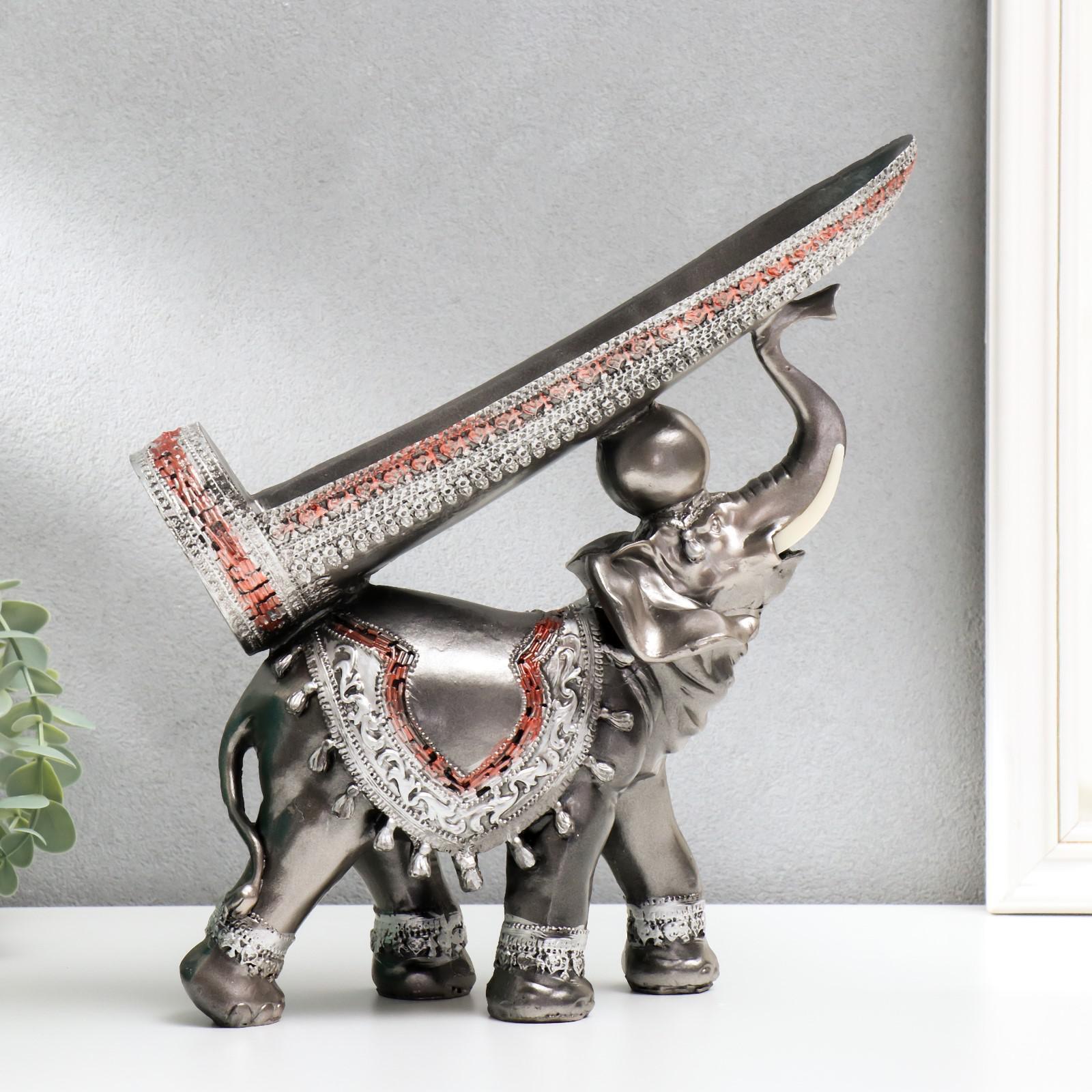 Сувенир полистоун подставка под бутылку "Грифельный слон" 29,5х29х10 см